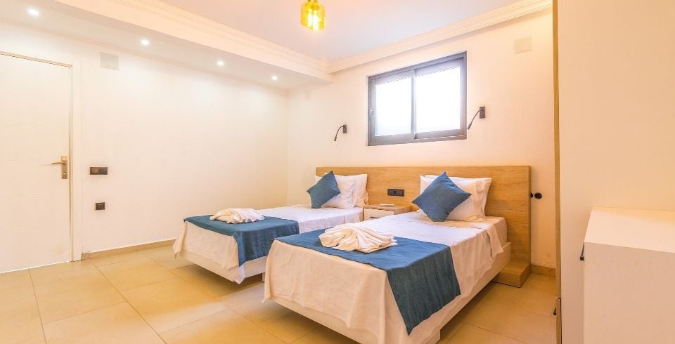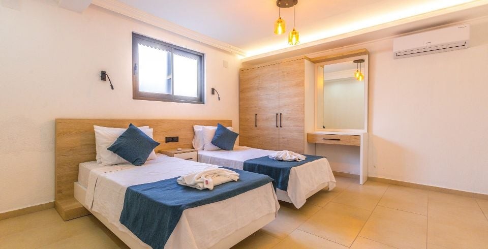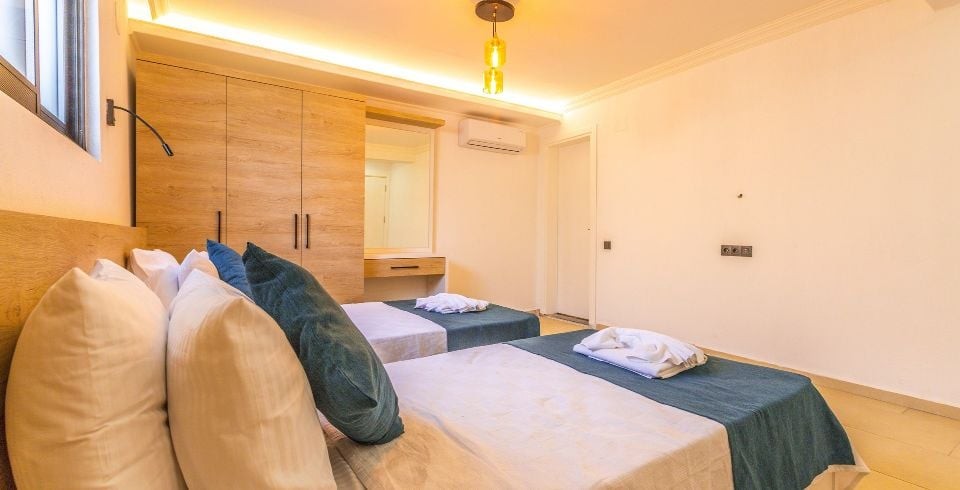2. Yatak Odası : İki adet tek kişilik yatak, elbise dolabı, komodin, makyaj masası, klima, banyo ve tuvalet ortak kullanımdır.