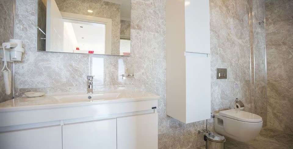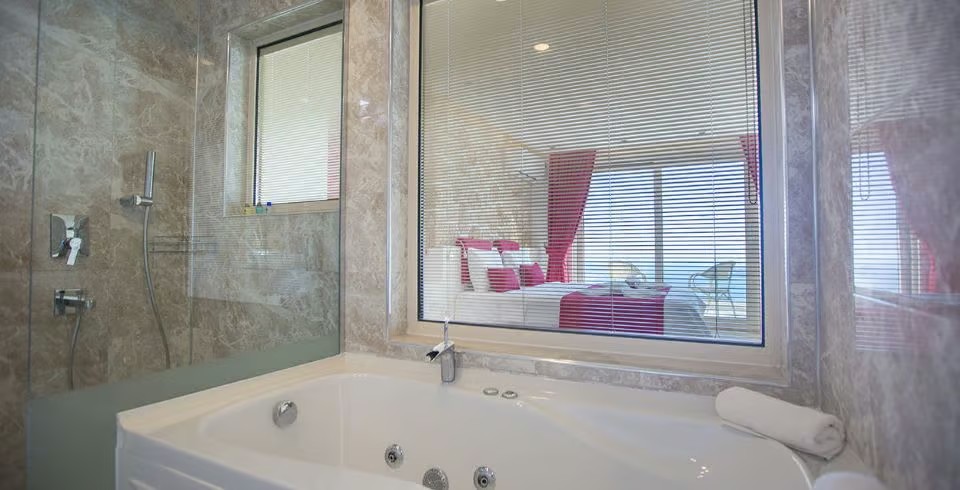 3. Yatak Odası : İki kişilik yatakla beraber klima, elbise dolabı, makyaj masası, komodin, banyo ve lavabodan oluşmaktadır. Bu yatak odamız da jakuzi bulunmaktadır. Bu yatak odamız da tek kişilik jakuzi bulunmaktadır.