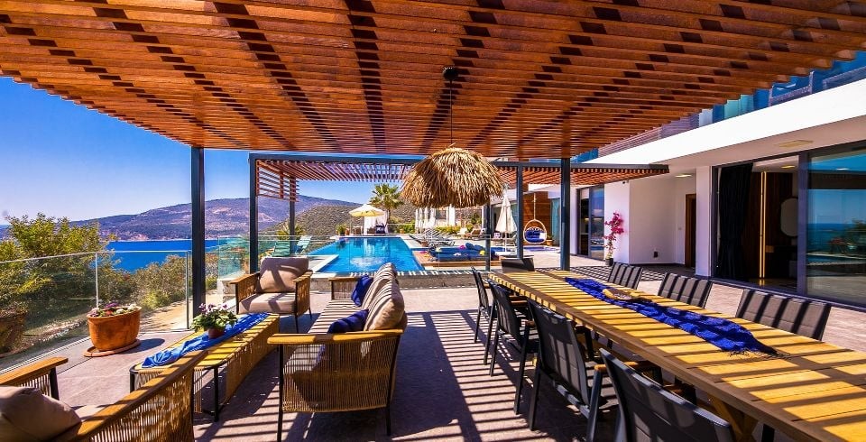 Kalkan Kalamar koyunda muhteşem doğa ve deniz manzarasına sahip lüks kiralık villamızdır. Villa Lapis 2019 yılında yapımı tamamlanmış olup son derece lüks ve konforlu bir seçenektir. Kalamar koyu ve adalar manzarasına sahip tüm yatak odalarından deniz manzarasını görmeniz mümkündür. Villamız konumdan dolayı Kalkan merkeze, bir çok plaj ve restorana oldukça yakın yürüyüş mesafesindedir. Villa Lapis dekorasyonu ile fark yaratan bir villadır.