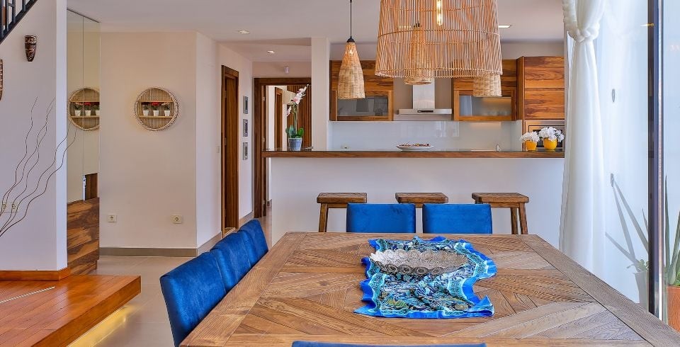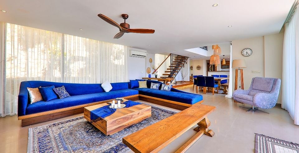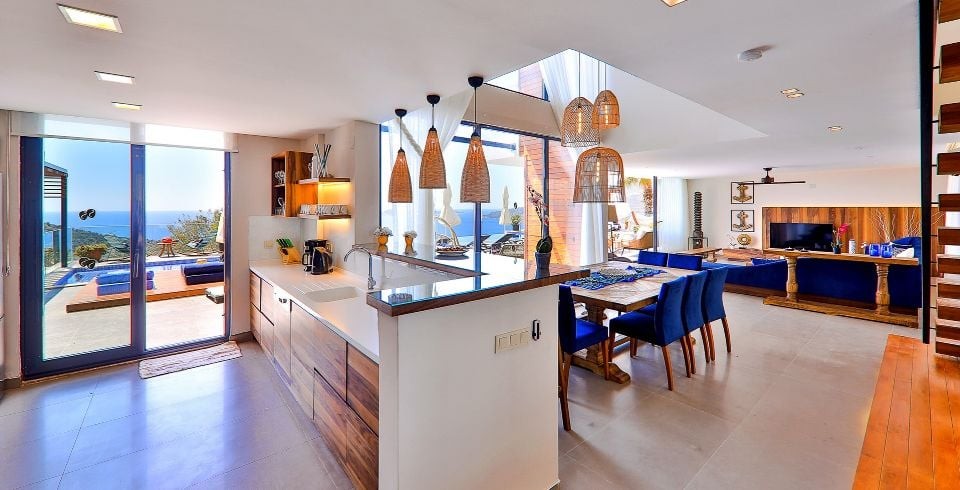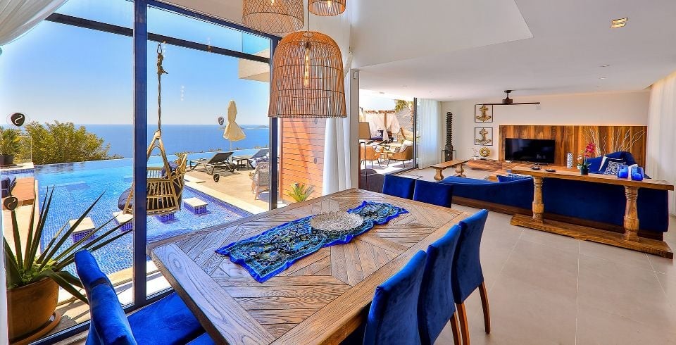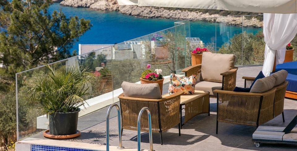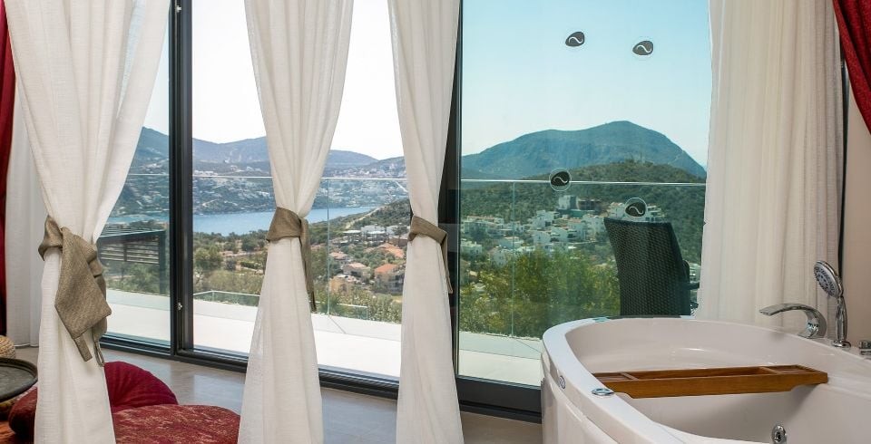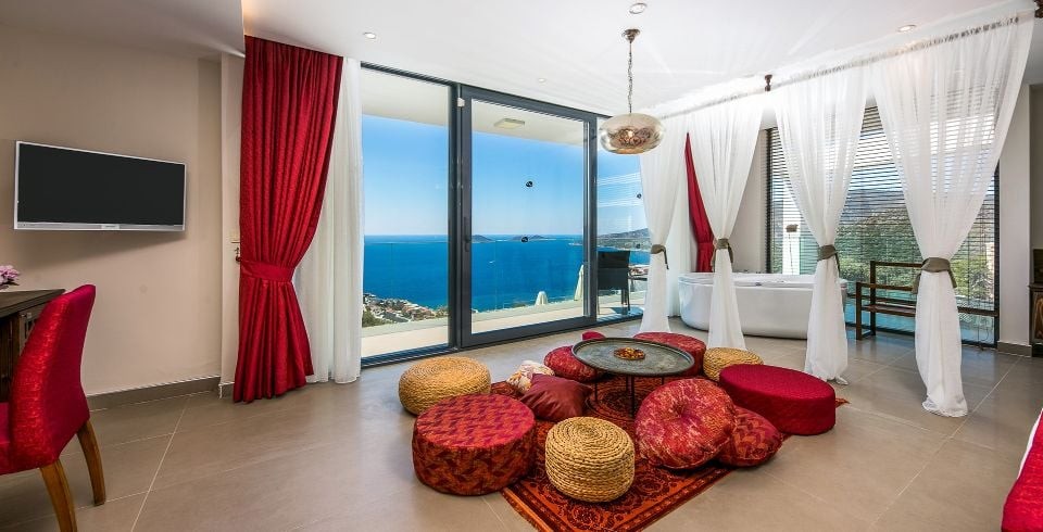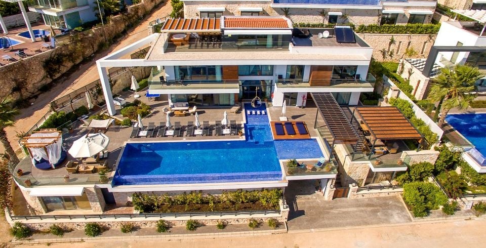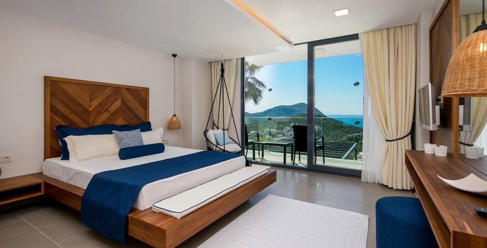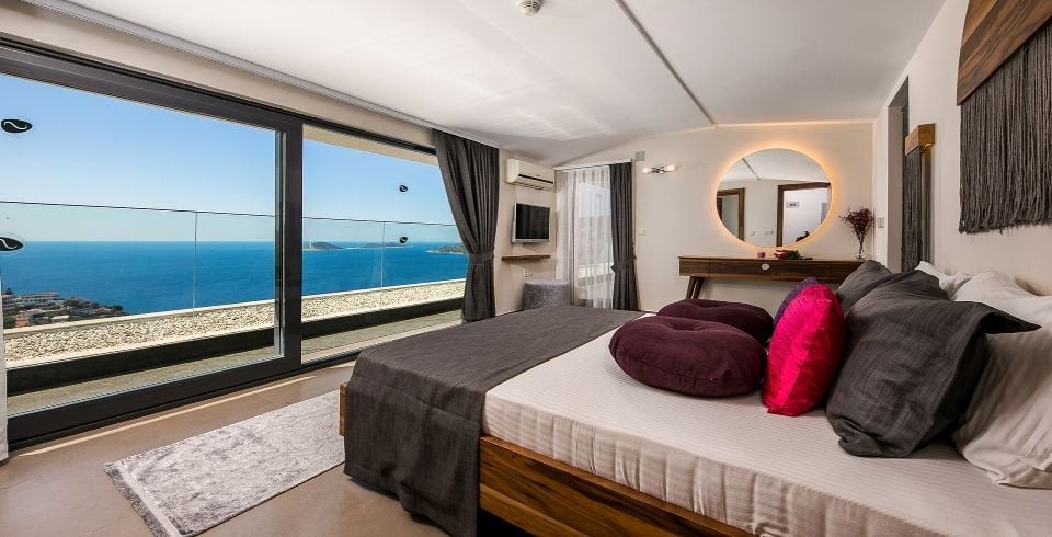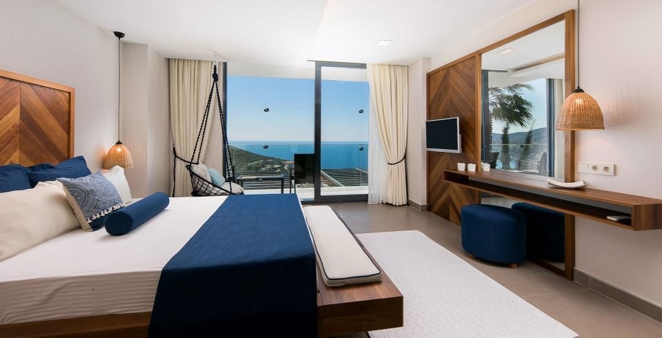 Bu lüks deniz manzaralı kiralık villa,  5 yatak odalı olup 10 kişilik konaklama kapasitesine sahiptir. Hem kalabalık arkadaş grupları için ideal hem de geniş aileler için uygun bir villadır. Villamızdan tüm plajlara ulaşım yürüyüş mesafesinde de bulunsa da coğrafi yapısından dolayı araçlar ile sağlanmaktadır.