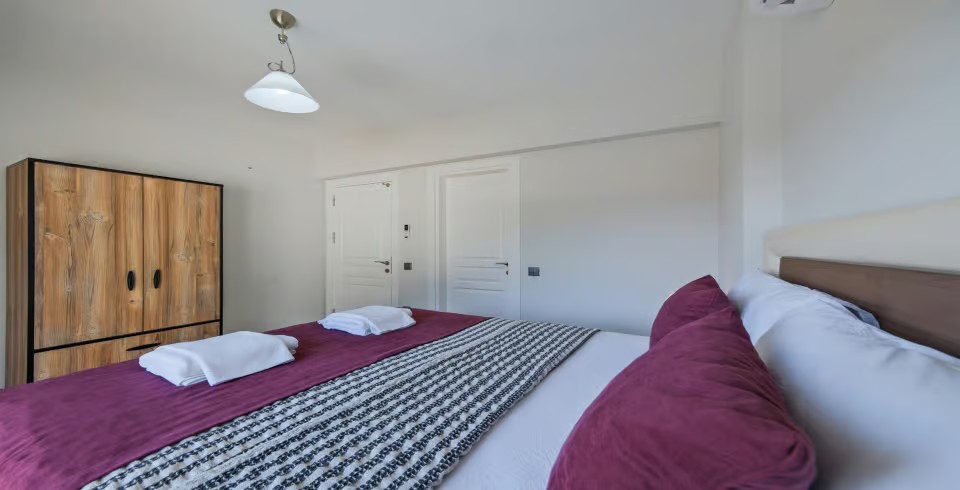 2. Yatak Odası : 1 adet çift kişilik yatak, klima, komodin, elbise dolabı, banyo ve tuvalet bulunmaktadır.