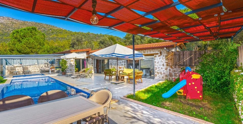 Bütün villa çeşitlerimiz için villalara ilk gün giriş saati öğleden sonra 16.00, tatilinizin sonunda ise villadan ayrılma saatiniz ise sabah 10.00’dur. Aradaki zaman diliminde hijyen için gerekli temizlik yapıldığından dolayı villaya giriş saatinizden erken gelme durumlarında sizlere yardımcı olamayacağımızı belirtmek durumundayız. Bu yüzden sizden ricamız villaya giriş ve çıkış saatlerinize dikkat etmeniz. Kalkanda bulunan bu villamız coğrafi yapısı bakımından, yamaç üzerine kurulmuş bu harika tasarım villamız bu yüzden size harika bir manzara sunmaktadır. Kalkan ve çevresindeki bulunan tüm villalarımıza ulaşmak için, yokuş yukarı çıkılmaktadır ama bunun sonucunda mükemmel bir tatil yerine ulaşmış olacaksınız.