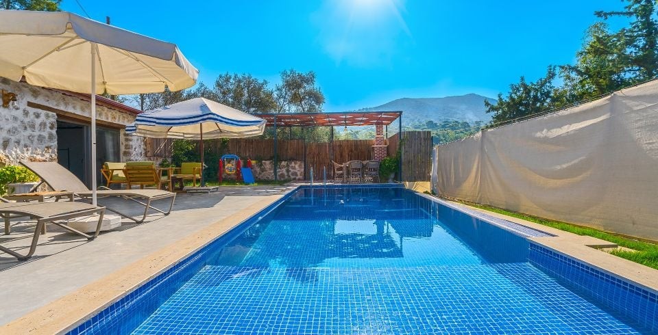 Havuz : Villamızın havuzu ise etrafı dışarıdan görülmeyecek şekilde korunaklı olup sizlere huzurlu ve keyifli havuz deneyimi sunmaktadır. Size özel muhafazakâr yüzme havuzu, şezlong keyfi ve şemsiye ile yazın en güzel günlerinde sizleri bekliyor.