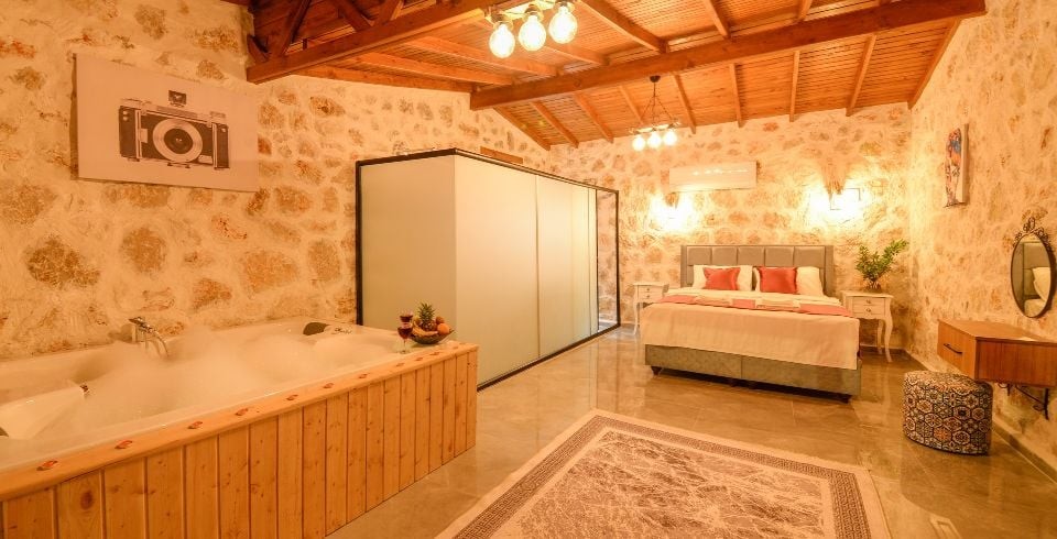1. Yatak Odası : Çift kişilik yatakla beraber klima, jakuzi, elbise askılığı, makyaj masası, komodin, banyo ve lavabodan oluşmaktadır.
