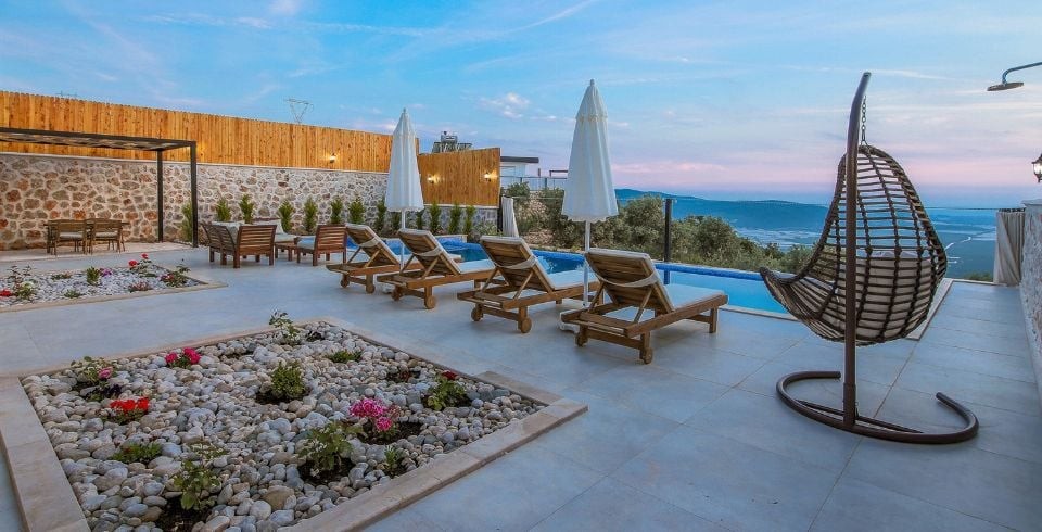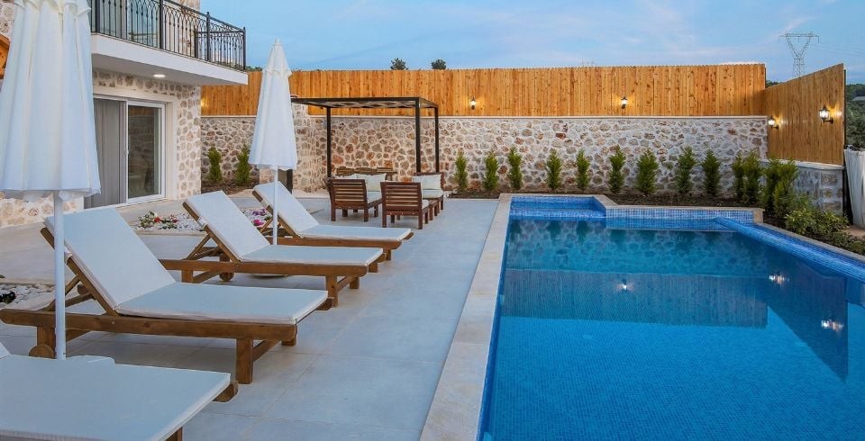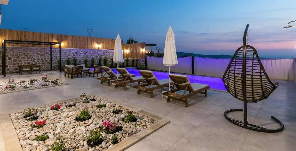 Kalkan’ın huzurlu Üzümlü bölgesinde yer alan Villa Lavinia, doğanın kalbinde konumlanmış, balayı çiftleri ve aileler için özel olarak tasarlanmış modern ve romantik bir tatil villasıdır. Sessizliği, manzarası ve konforuyla dikkat çeken villa, misafirlerine şehir gürültüsünden uzak, tamamen doğayla iç içe bir tatil sunar. Göz alıcı mimarisi, özel yüzme havuzu ve jakuzisiyle hem romantik hem de konforlu bir atmosfer yaratır.