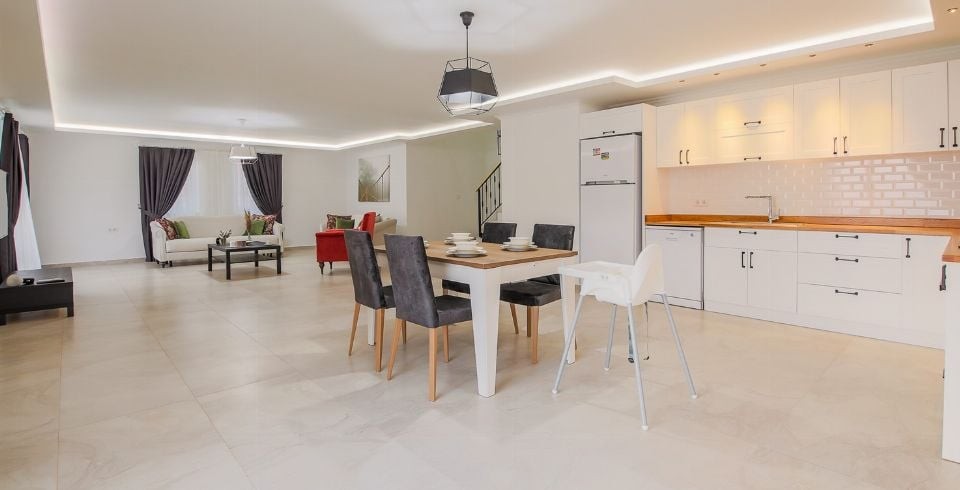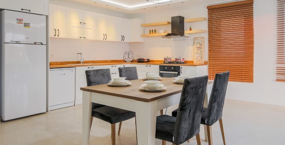 Mutfak : Güzel yemekler hazırlayabileceğiniz şık tasarım ve kullanışlı mutfağımızda aradığınız bütün mutfak araç-gereçlerini bulmanız mümkün. Modern Amerika mutfağımızda buzdolabı, bulaşık makinesi, çamaşır makinesi, elektrikli su ısıtıcısı, 4lü ocak ve tava takımına kadar her şey eksiksiz bir şekilde mevcuttur.