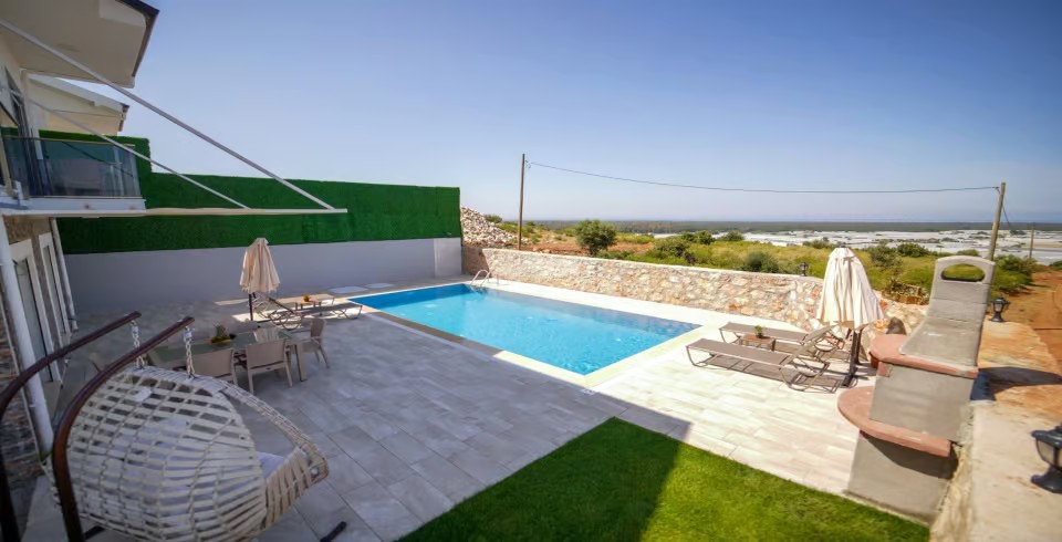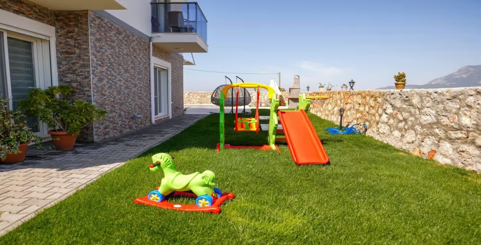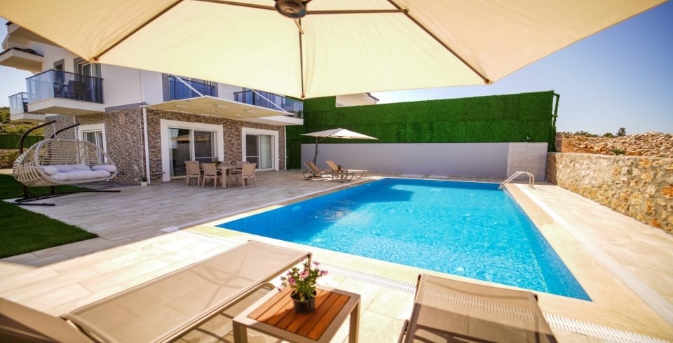 Havuz ve Bahçe: Özel yüzme havuzu, şezlong, şemsiye, salıncak, yemek masası ve barbekü ve çocuk oyun alanı bulunmaktadır.