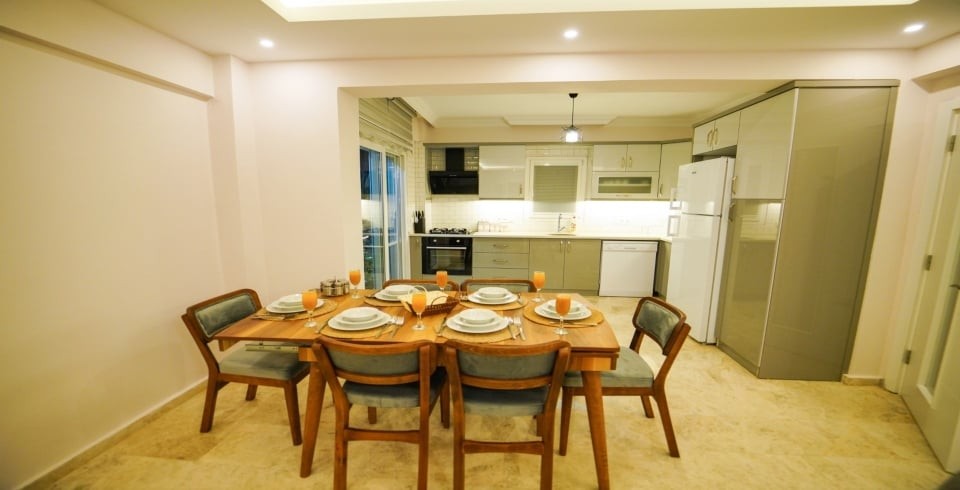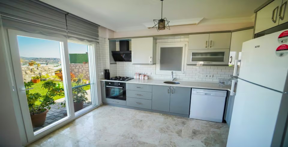 Mutfak: Villamızın mutfağında buzdolabı bulaşık makinası, çamaşır makinası, 4'lü ocak, ketıl, tencere tava takımı, yemek takımı bulunmaktadır.