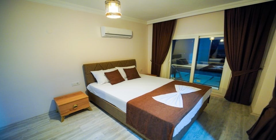 3.Yatak Odası: 1 adet çift kişilik yatak, komodin, klima, elbise dolabı, banyo ve tuvalet bulunmaktadır.