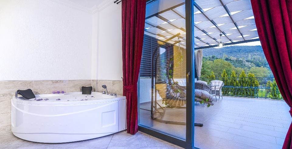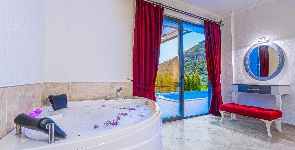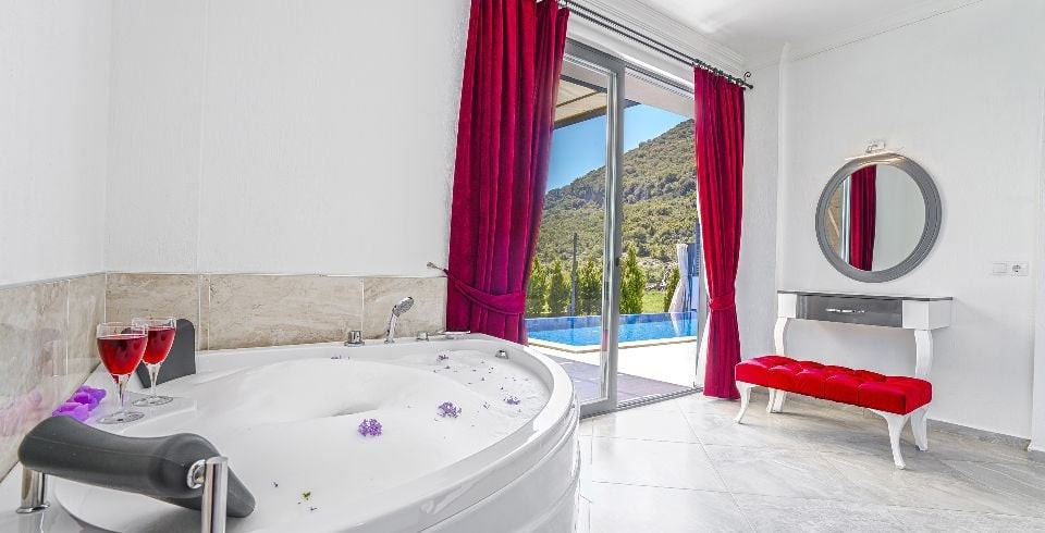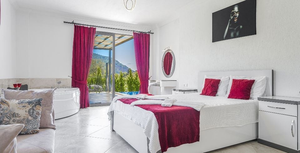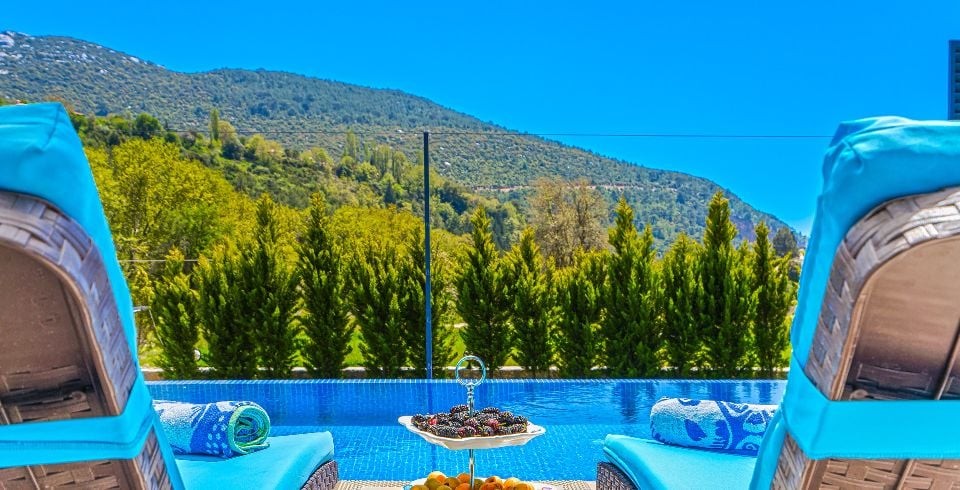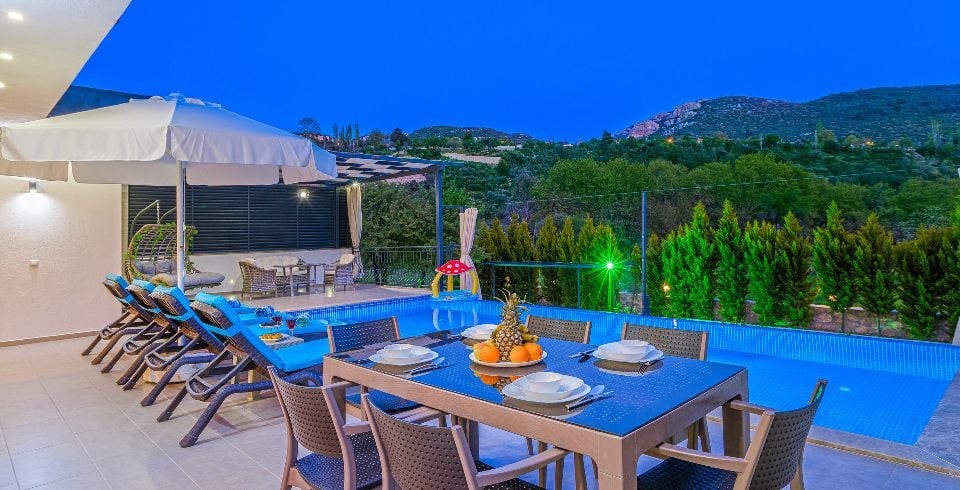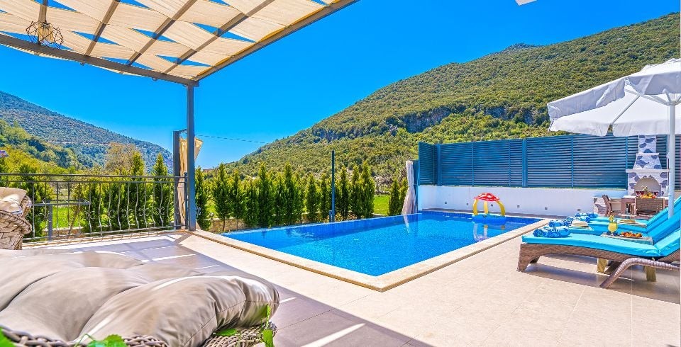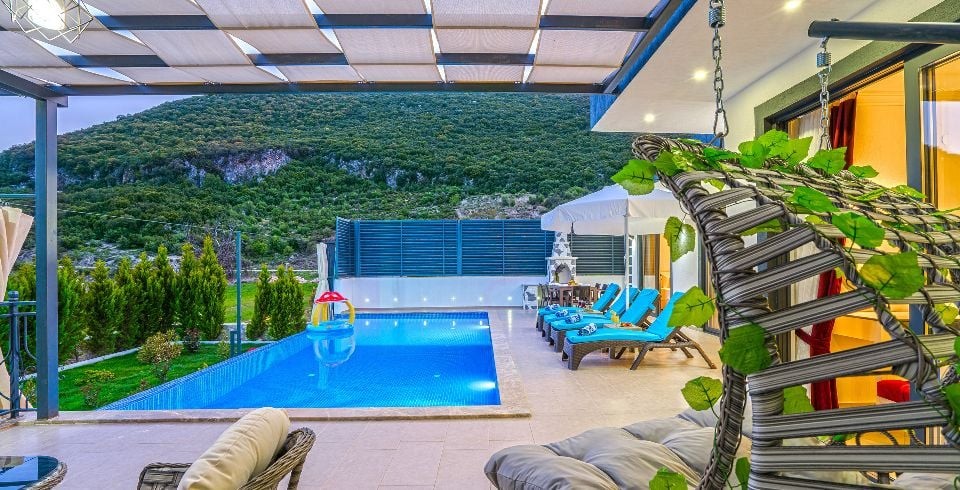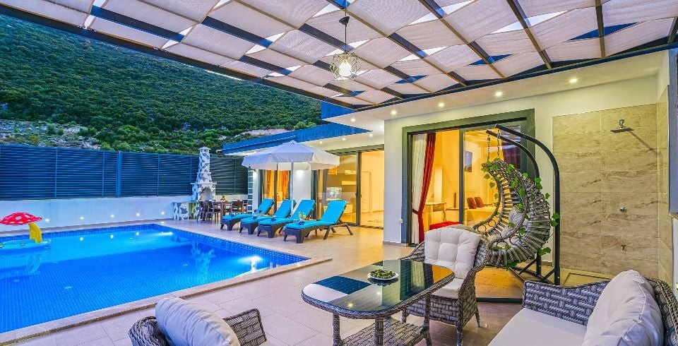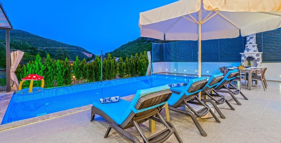 Villamız Kalkan Sarıbelen mevkisin de bulunmaktadır. Kiralık yazlık villamız 2 yatak odalı 4 kişilik konaklama kapasitesine sahiptir. Doğa içerisinde bulunan şehrin gürültüsünden uzak hem yeşillikler içerinde olan villamız havuz terası muhafazakar olup dışarıdan gözükmemektedir. Özel yüzme havuzunda oldukça rahat güneşlenme havuz terasına sahiptir. Ayrıca çift kişilik yatak odasında 2 kişilik jakuzi bulunmaktadır. Doğa içinde huzur ve rahatlık arayanlar için muazzam bir seçenek olacaktır yazlık villamız.