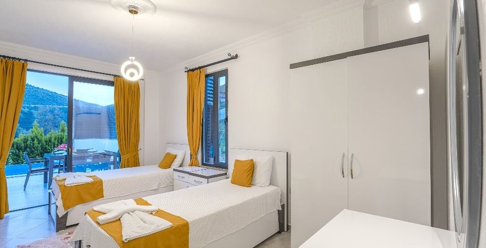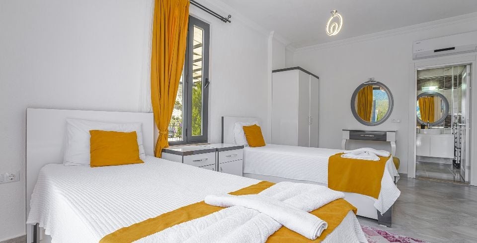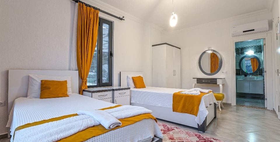 2. Yatak Odası : 2 adet tek kişilik yatak, klima, komodin, makyaj masası bulunmaktadır. Banyo ve tuvalet bulunmaktadır.