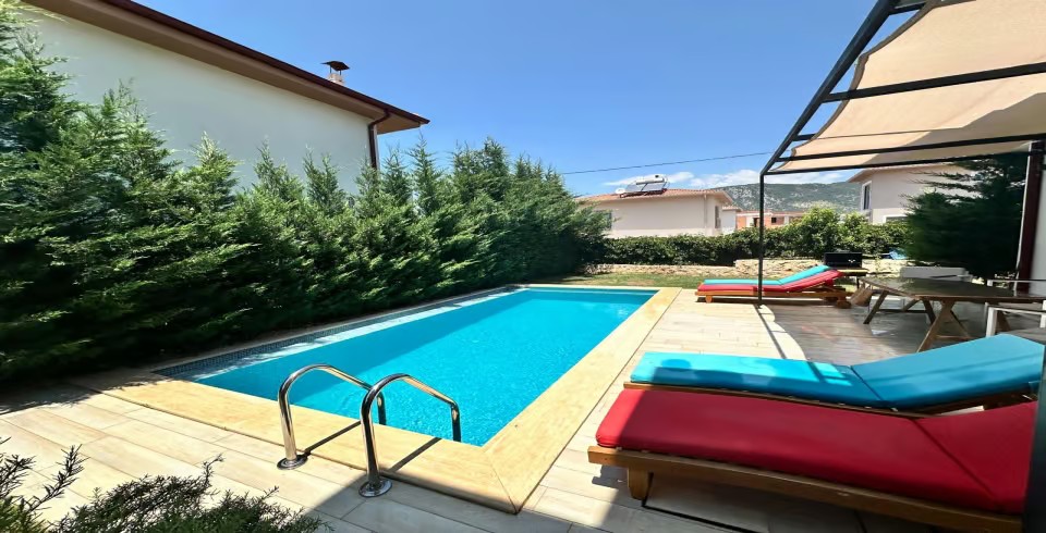 Villa Lime Kaş, Kalabalık aile ve arkadaş grupları için oldukça uygun olan villamız Kaş bölgesinde yer almaktadır. 3 yatak odalı ve 6 kişilik konaklama kapasitesine sahip villamız Çocuklu aileler için uygun olan bahçeye sahiptir. Villa Lime Kaş'ın geniş bahçesinde sıcaktan bunaldığınızda serinleyebileceğiniz havuz, şezlong, oturma köşesi, yemek masası ve barbekü vardır. Modern ve kaliteli eşyalar ile dekore edilen villamızın iki yatak odasında çift kişilik yatak diğer yatak odasında ise tek kişilik iki adet yatak bulunmaktadır.