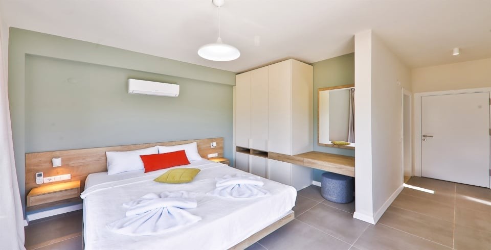 3. Yatak Odası : Çift kişilik bir adet yatak, elbise dolabı, komodin, klima, banyo ve tuvalet bulunmaktadır.