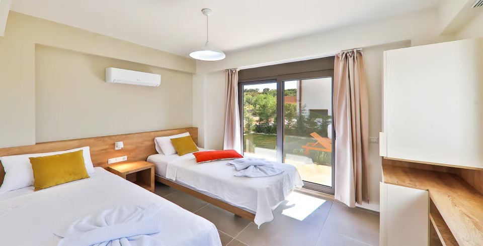 2. Yatak Odası : Tek kişilik iki adet yatak, elbise dolabı, komodin, klima, banyo ve tuvalet bulunmaktadır.