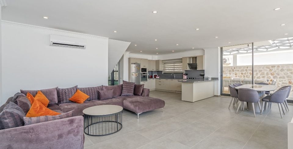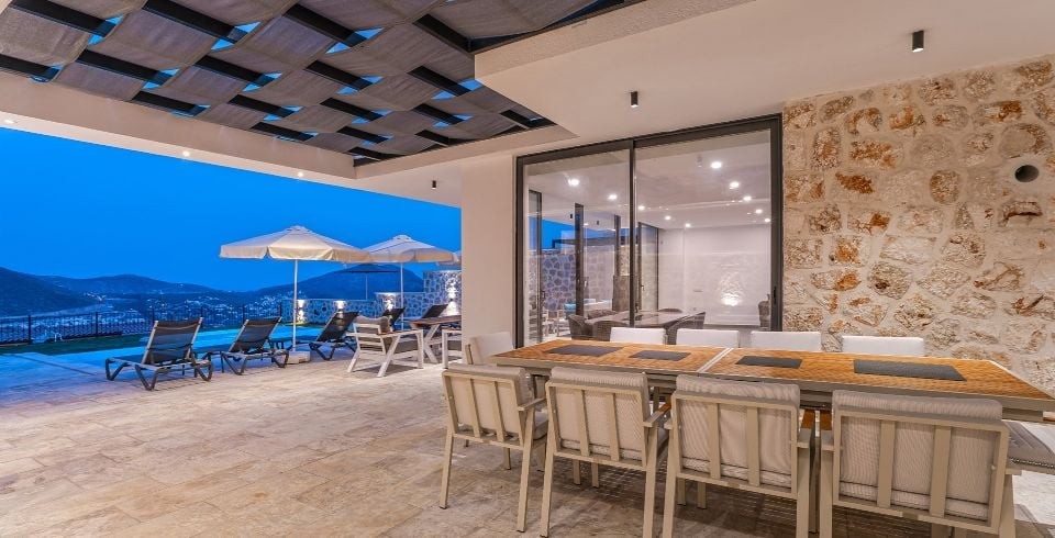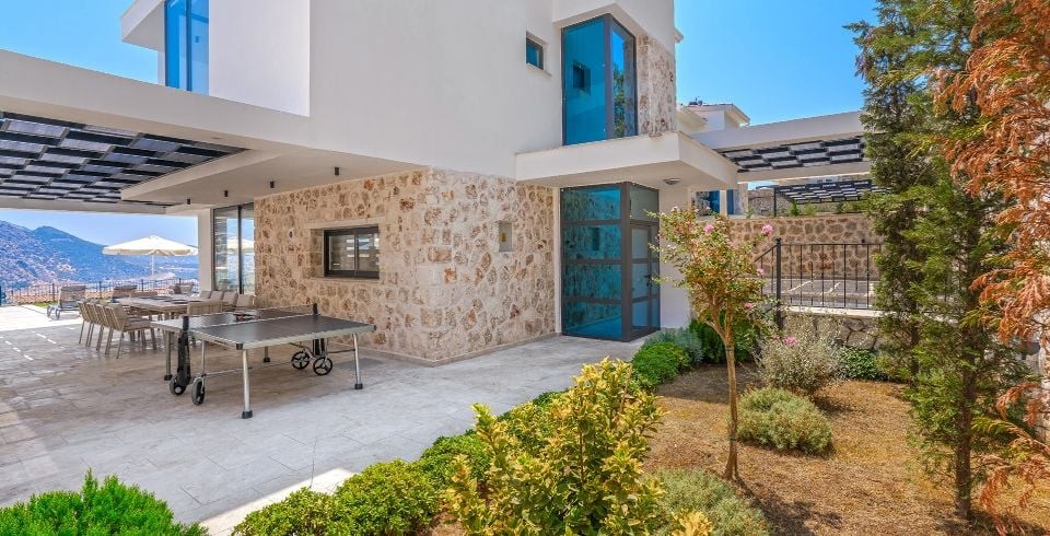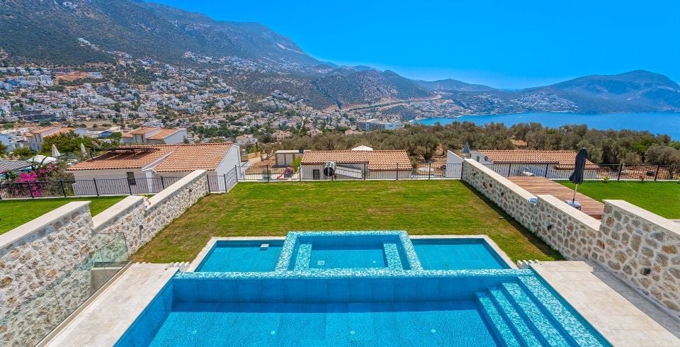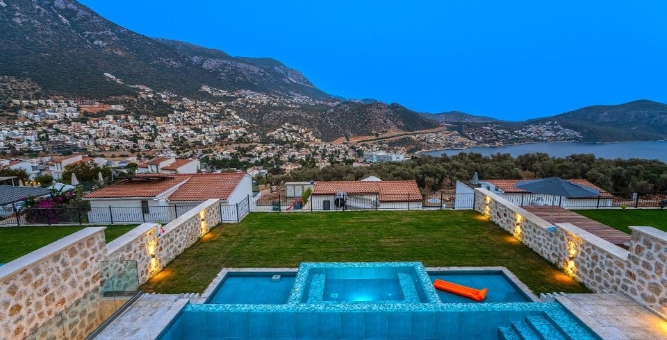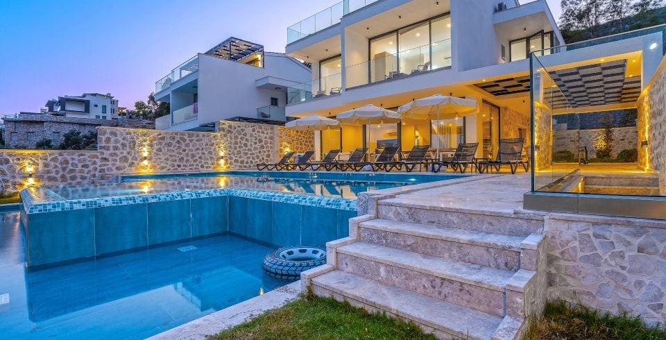 Kalkan’ın Ortaalan mevkisinde yer alan Villa Lion, deniz manzaralı konumu, modern mimarisi ve geniş yaşam alanlarıyla kalabalık aileler için ideal bir tatil villasıdır. Altı yatak odası ve altı banyosuyla 12 kişilik konaklama kapasitesi sunan villada, zarif tasarımlı salon, tam donanımlı mutfak ve konforlu oturma alanları bulunmaktadır.