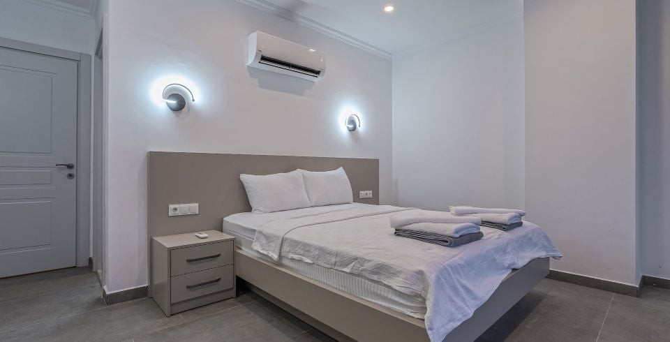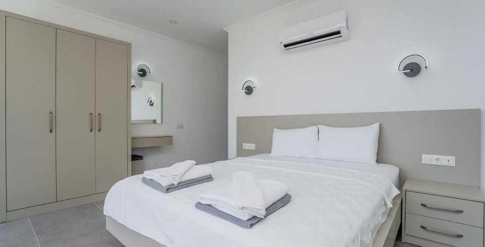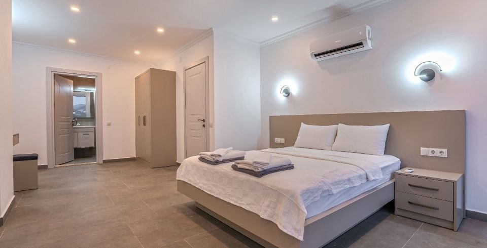 1. Yatak Odası : 1 adet çift kişilik yatak, klima,  komodin, elbise dolabı, banyo ve tuvalet bulunmaktadır.