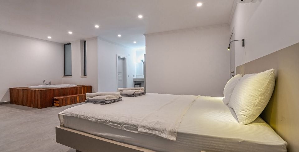 4. Yatak Odası : 1 adet çift kişilik yatak, klima, jakuzi komodin, elbise dolabı, banyo ve tuvalet bulunmaktadır.