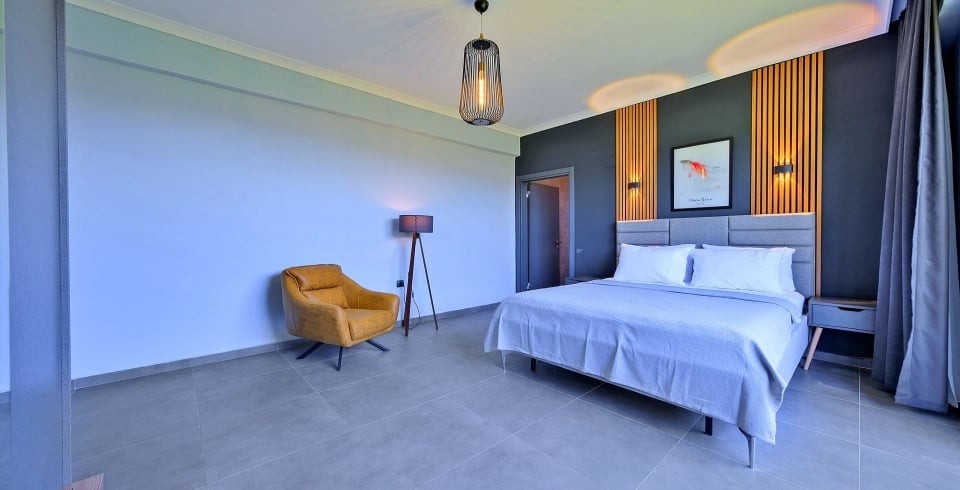 1. Yatak Odası: 1 çift kişilik yatak, komodin, banyo/WC, klima, elbise dolabı, makyaj masası ve berjer bulunmaktadır.