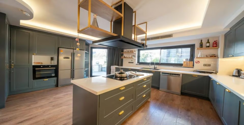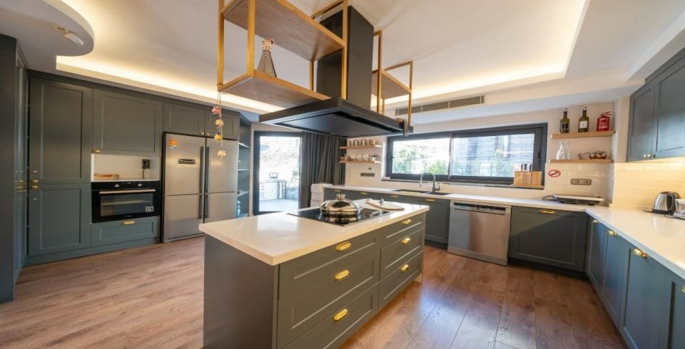 Mutfak: Buzdolabı, bulaşık makinesi, ankastre set, tost makinası, kettle, 8 kişilik yemek takımı, ve tüm mutfak gereçleri yeteri kadar bulunmaktadır.