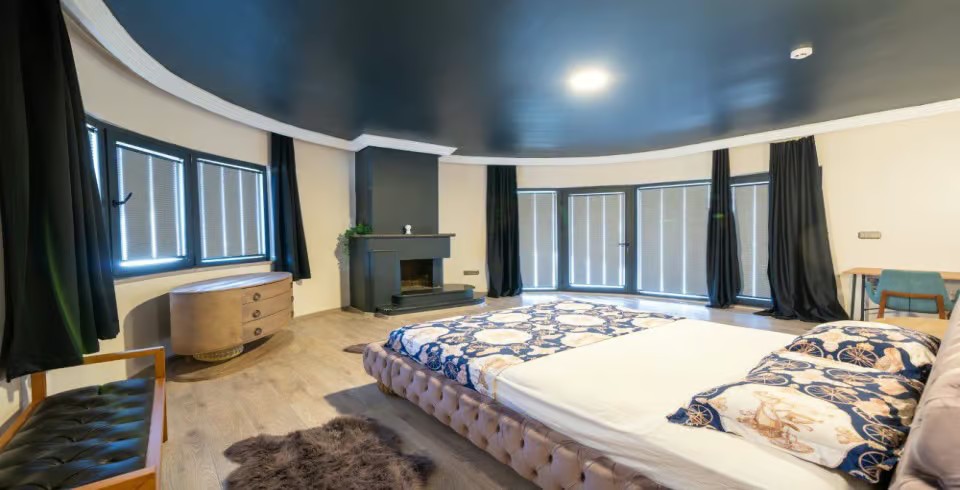 1. Yatak Odası: 1 adet çift kişilik yatak, elbise dolabı, makyaj masası, jakuzi, klima ve banyo-tuvalet yer almaktadır.