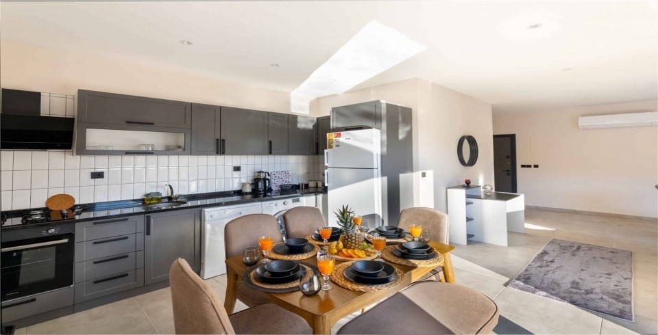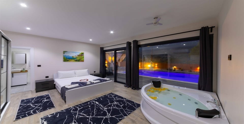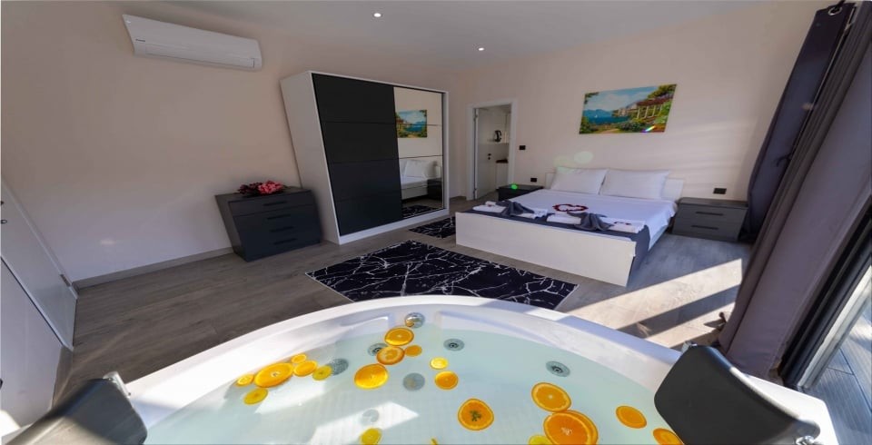 Yatak odalarından biri jakuzili ebeveyn süiti olarak tasarlanmış olup misafirlere günün yorgunluğunu atma fırsatı sunar. Diğer yatak odası ise çocuklu aileler veya arkadaşlar için idealdir. Tüm odalar özenle dekore edilerek rahat bir konaklama ortamı oluşturulmuştur.