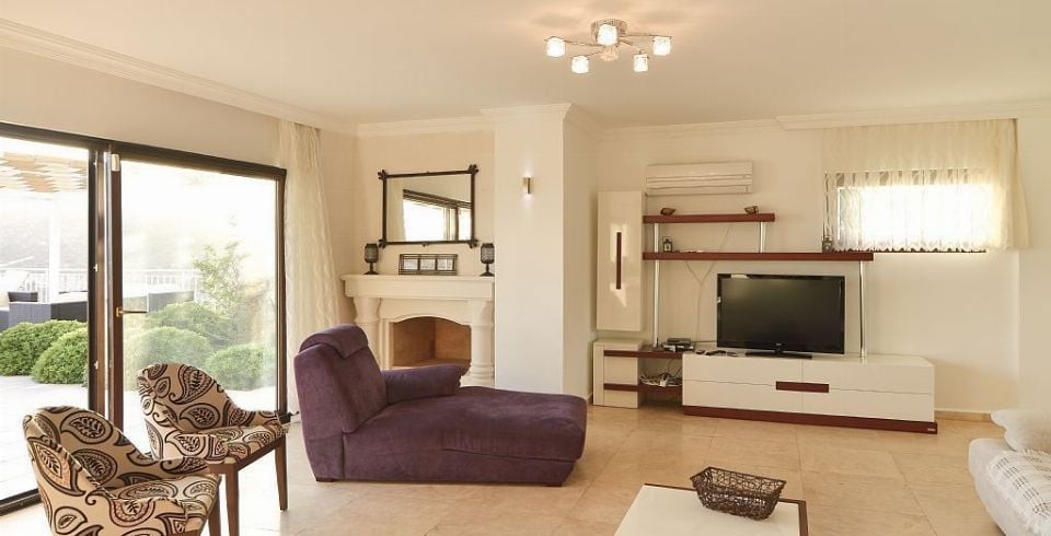 Salon : Salonumuzda klima, rahat oturma grubu, uydu alıcı, LCD TV, DVD player, müzik sistemi, internet için modem bulunmaktadır. Salondan havuz kenarına çıkış yapılabilmektedir. Salonumuz deniz manzaralıdır. Ayrıca banyo ve çamaşır odası bulunmaktadır. Salon havuz katındadır.