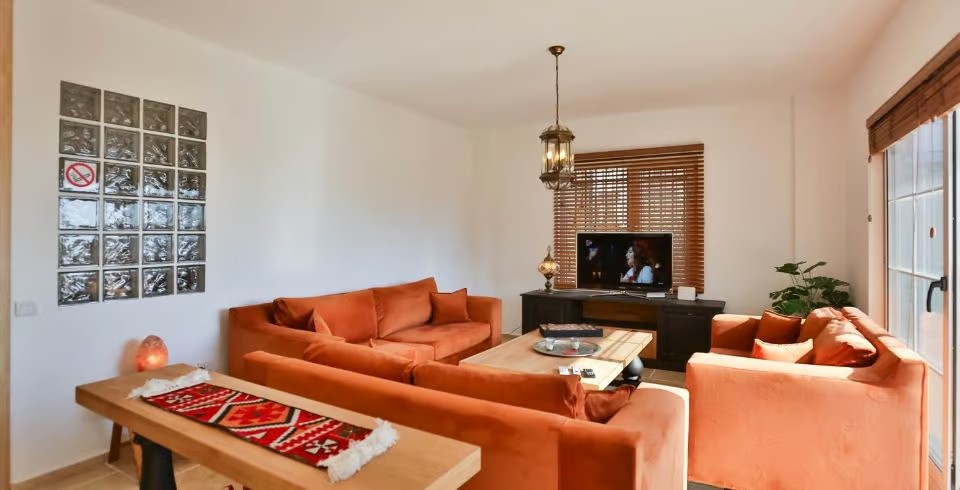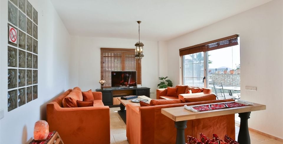 Salon : Villanın salonunda sizi şık bir oturma grubu ile klima, televizyon, internet, uydu, koltuk, sehpa ile ferah bir salon bekliyor olacaktır. Havuz terasına çıkış yapılmaktadır.