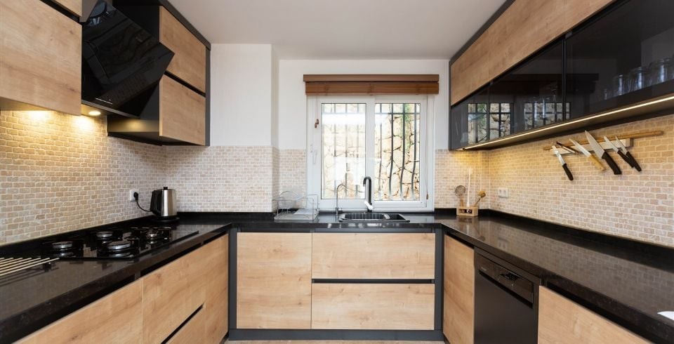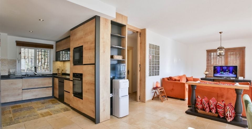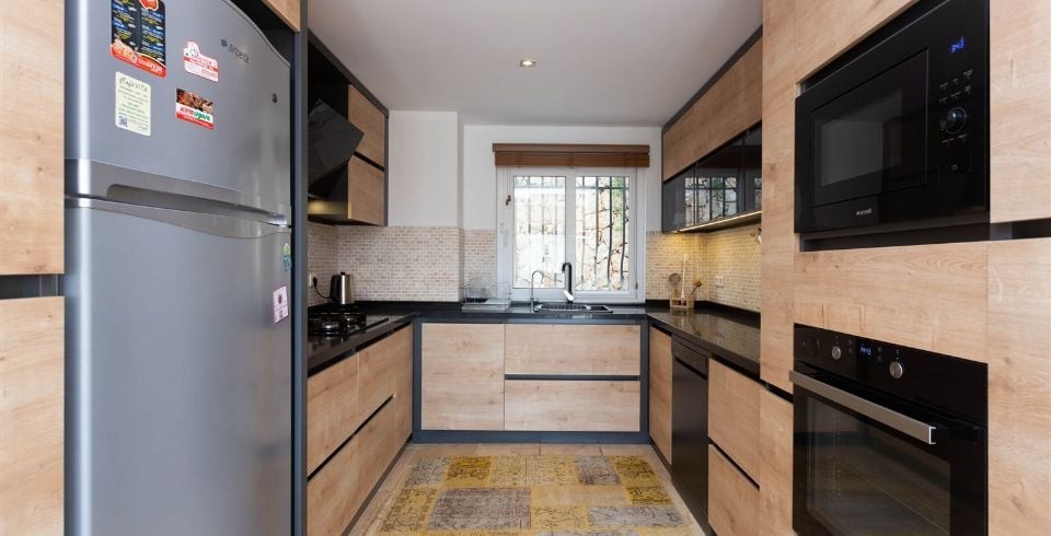 Mutfak : Villamızın geniş Amerikan mutfağı ile sizlere kendi evinizin mutfağı gibi hissettirecek. Ayrıca mutfakta klima, bulaşık makinası, buzdolabı, çamaşır makinası, tost makinesi, ekmek kızartma, su ısıtıcısı, fırın, 4'lü ocak seti ve 8 kişilik geniş yemek masası ile tava tencere vb. mutfak araç gereçlerini kullanma fırsatını sizlere sunuyoruz.