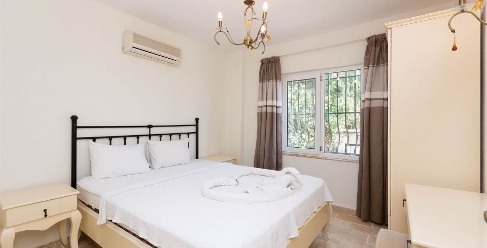 3. Yatak Odası : 1 adet çift kişilik yatak, klima, komodin, elbise dolabı, ortak kullanım banyo ve lavabo bulunmaktadır.