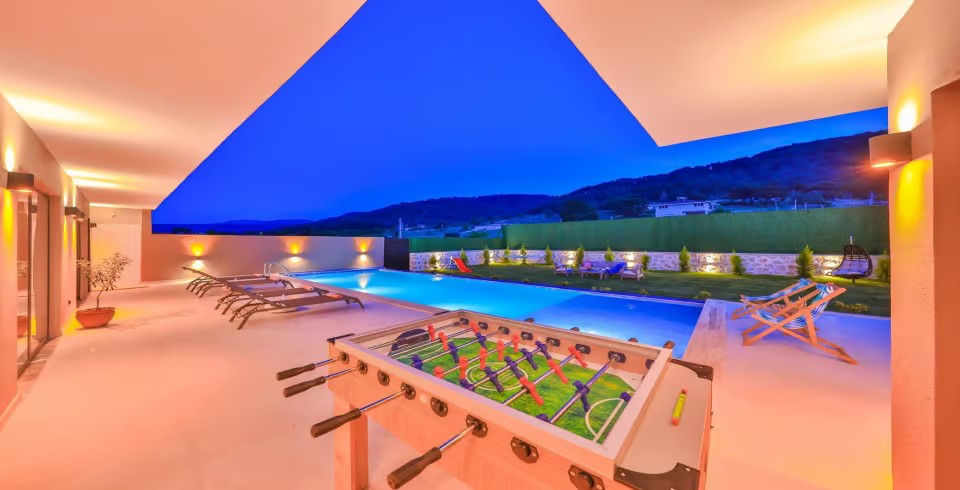 Villa Lukka, Kaş Kalkan’ın Sarıbelen bölgesinde yer alan, 2 yatak odalı ve 4 kişilik konaklama kapasitesine sahip özel bir tatil villasıdır. %80 korunaklı yüzme havuzu, geniş bahçesi, çocuk oyun alanı ve langırt gibi olanaklarıyla aileler ve arkadaş grupları için ideal bir seçenektir. Modern dekorasyonu, jakuzili ebeveyn odası ve tam donanımlı mutfağıyla konforlu bir tatil sunar. Doğayla iç içe, huzurlu bir konumda yer alan Villa Lukka, sakinlik ve mahremiyet arayan misafirler için mükemmel bir tercih olacaktır.