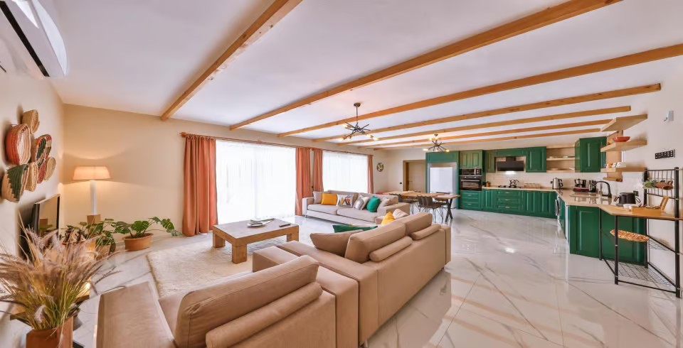 Mutfak : Amerikan açık mutfak ve salona sahip villamızın mutfağında buzdolabı, bulaşık makinası, ankastre ocak, fırın, mikrodalga, 4'lü ankastre ocak, kettle, çamaşır makinası, yemek masası ve temel mutfak araç ve gereçleri bulunmaktadır.