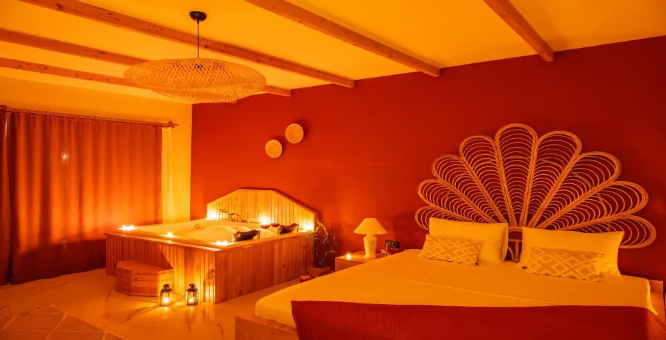 1. Yatak Odası : Çift kişilik yatak odası, Jakuzi, klima, elbise dolabı, makyaj masası, komodin, banyo ve WC bulunmaktadır.