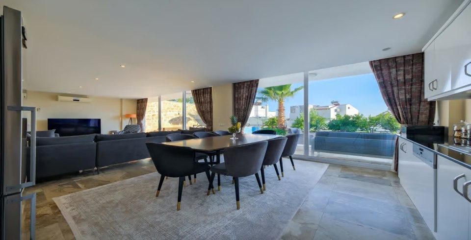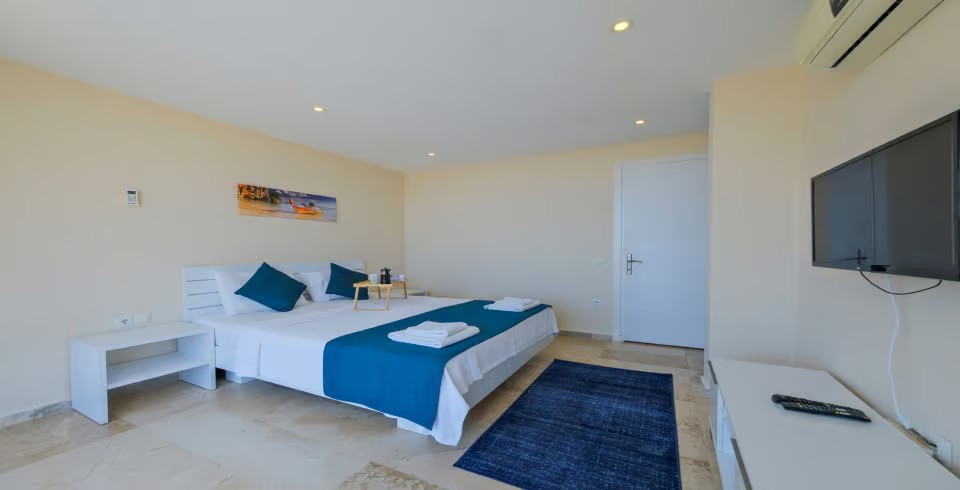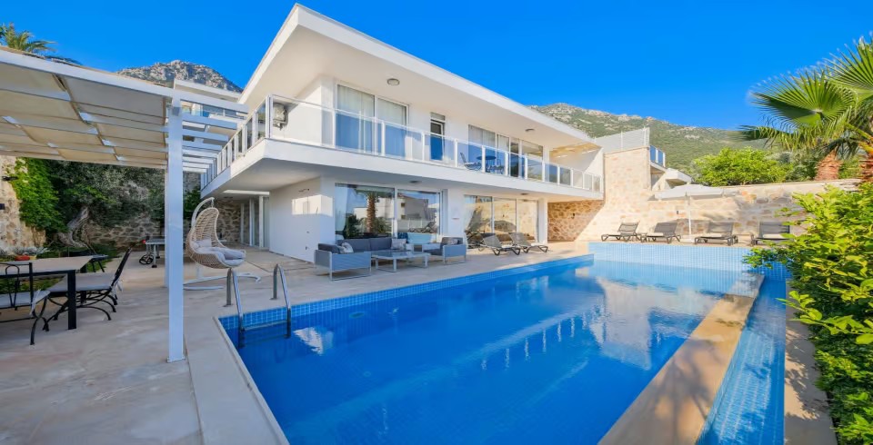 Villa Lumiere 2, Kalkan’ın Kızıltaş bölgesinde yer alan ve panoramik deniz manzarasıyla öne çıkan lüks bir tatil villasıdır. Sekiz kişilik kapasitesiyle kalabalık aileler ve arkadaş grupları için ideal olan villada dört yatak odası ve her odada özel banyo bulunur. Modern tasarıma sahip geniş salon, konforlu oturma alanı ve tam donanımlı mutfakla birleşerek ev konforunda bir tatil imkânı sunar. Büyük cam kapılar sayesinde iç mekân gün ışığıyla aydınlanırken, terasa doğrudan çıkış sağlar.