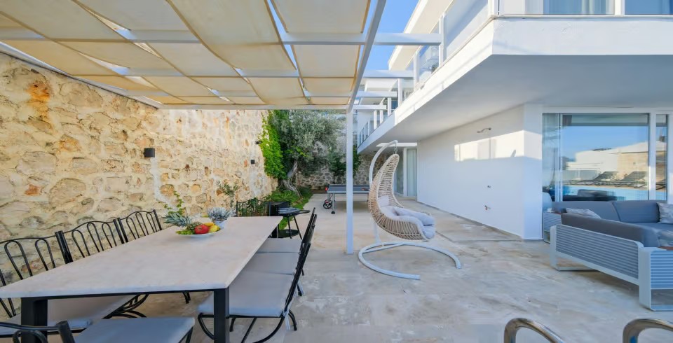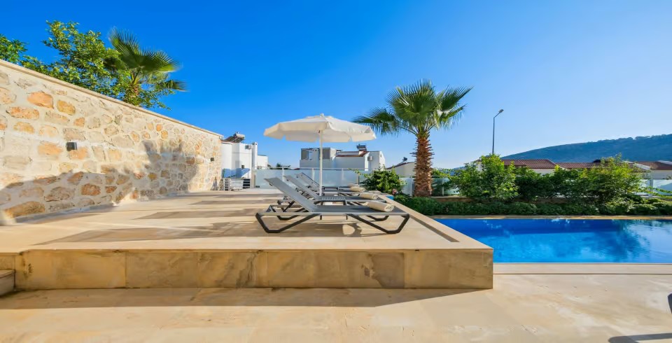 Dış mekânda 10 metre uzunluğunda özel yüzme havuzu, şezlonglar, gölgeli oturma alanı ve barbekü imkânı yer alır. Masa tenisi ve dinlenme köşeleriyle eğlence ve keyif bir arada sunulur. Konumu itibarıyla merkeze yürüyerek 10–15 dakika mesafede olan Villa Lumiere 2, plajlara, restoranlara ve marketlere kolay erişim sağlar. Manzara, konfor ve ulaşım avantajlarını bir araya getiren bu villa, Kalkan’da unutulmaz bir tatil için mükemmel bir tercihtir.