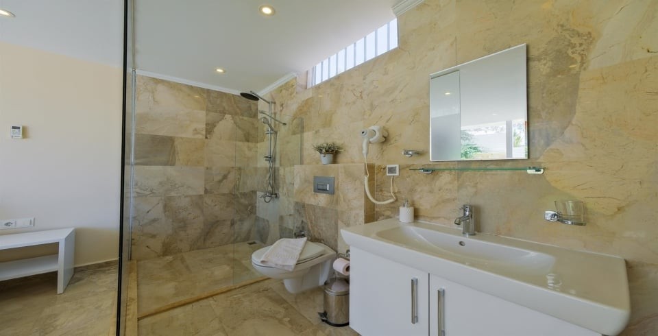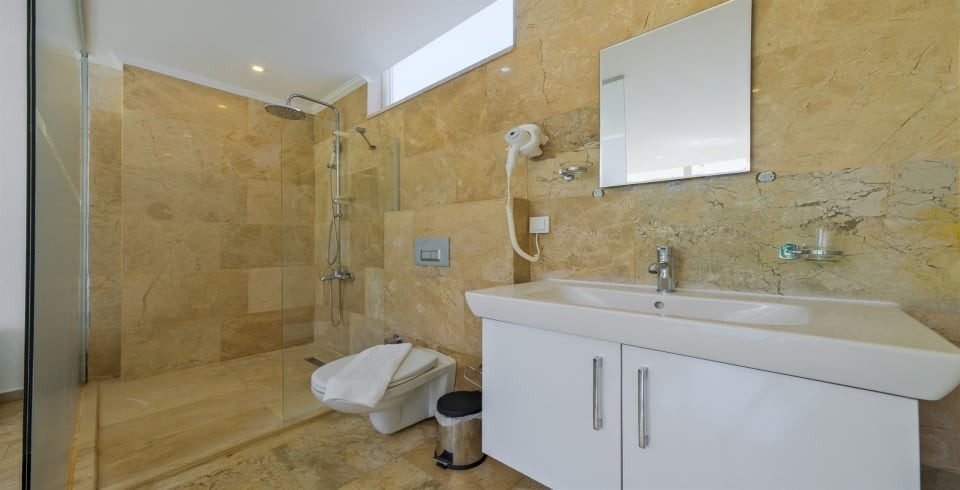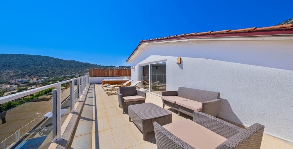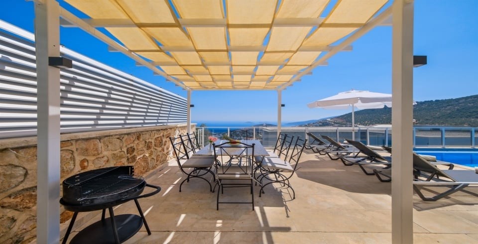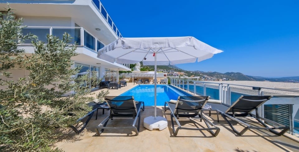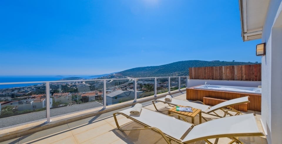 Geniş terasında özel yüzme havuzu yanı sıra şezlong, masa tenisi, barbekü, salıncak ve dinlenme köşeleri yer alır. Üst katta bulunan teras bölümünde panoramik manzaraya karşı jakuzi keyfi yapma imkânı, tatilinizi bir adım öne taşır. Merkeze yürüyerek yaklaşık 12–15 dakika mesafede konumlanan villa, plaj, restoran ve marketlere kısa sürede ulaşım sağlar. Manzara, eğlence ve mahremiyeti bir arada isteyenler için Villa Lumiere 3 unutulmaz bir tatil deneyimi vaat ediyor.