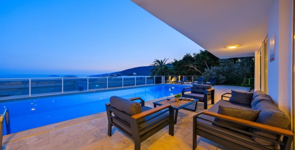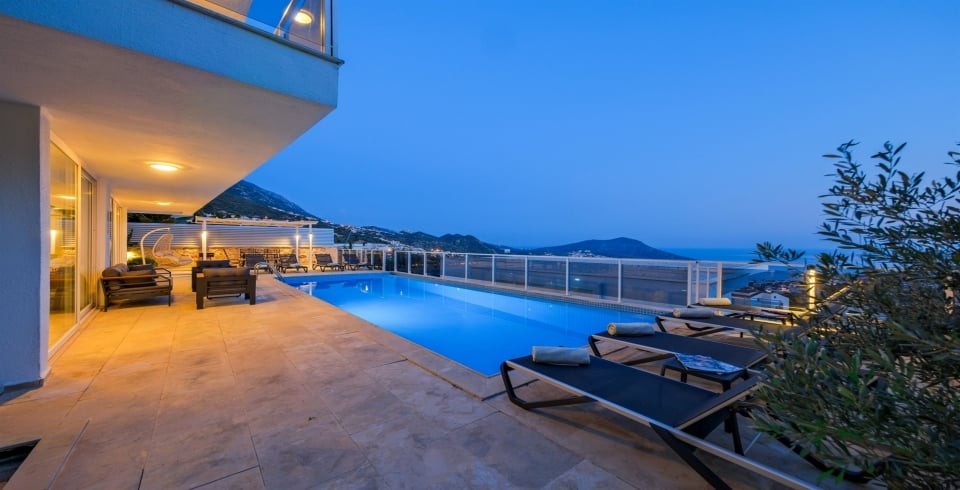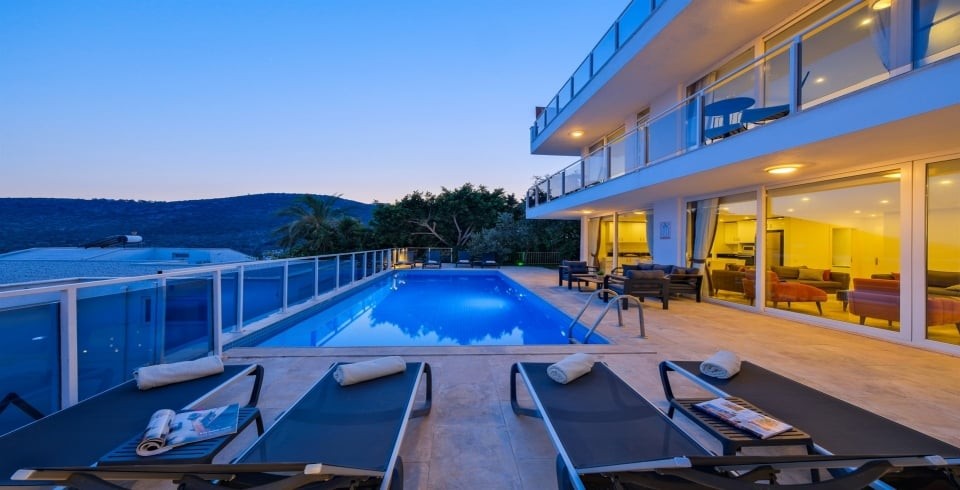 Villa Lumiere 3, Kalkan’ın Kızıltaş bölgesinde yer alan, deniz ve doğa manzarasına sahip lüks bir tatil villasıdır. Beş yatak odalı ve her biri en-suite banyolu bu villa, 10 kişilik konaklama kapasitesiyle geniş aileler ve arkadaş grupları için ideal bir seçenek sunar. Geniş salonda konforlu oturma grubu, TV ve açık plan mutfak yer alır; modern donanımı ile ev konforunu yaşatan bir alan sağlar.