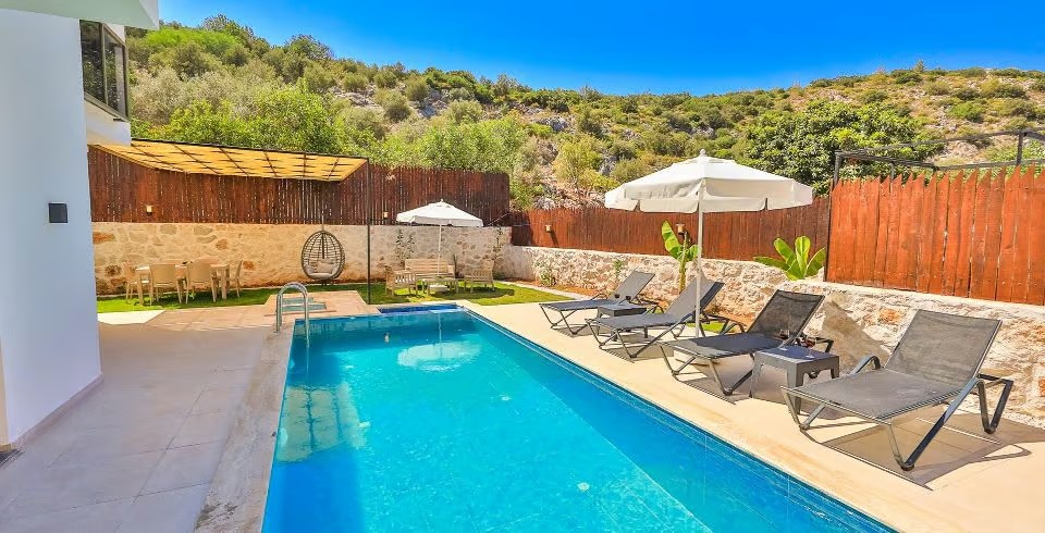 Villamız Kalkan Patara bölgesinde yer almaktadır.2 yatak odasına sahip tatil villamız 4 kişilik konaklama kapasitesine sahiptir. Doğa içinde bir konuma sahip olan tatil villamızın havuz alanı sizlere keyifli bir tatil ortamı sunmaktadır. Balayı çiftleri ve çekirdek aileler için ideal bir seçenek olan muhafazakar hassasiyete sahip misafirlerimiz içinde uygun bir tatil ortamı sunmaktadır. Villamız muhafazakar ve balayı villası olarak misafirlerimize hizmet vermektedir.
