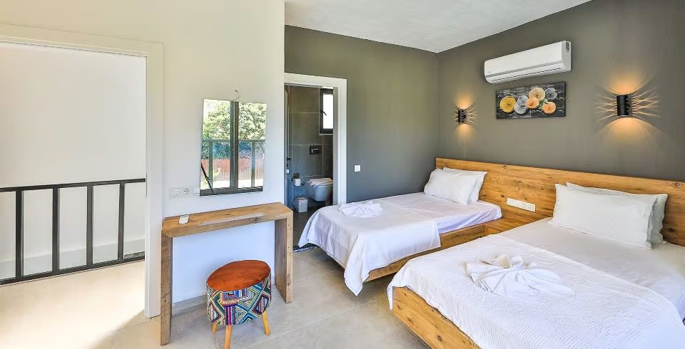 2. Yatak Odası: 2 adet tek kişilik yatak komodin, elbise dolabı, makyaj masası, banyo ve tuvalet bulunmaktadır.