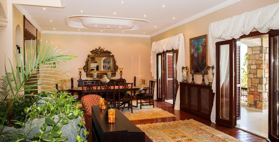 Salon : Zemin katta bulunan salonumuzda oturma grubu, uydu, TV, DVD, klima, yemek masası ve banyo ve tuvalet bulunmaktadır. Ayrıca salondan havuz başına çıkış vardır.