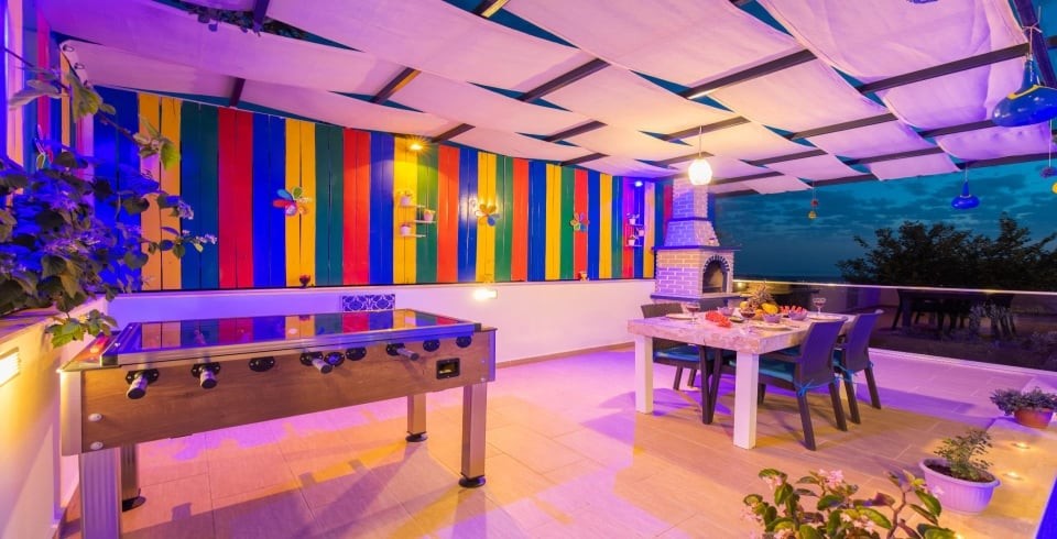 Havuz ve Bahçe : Ebeveynlerinin oynamaktan keyif alacağı langırt bulunmaktadır. Villamız korunaklı olduğundan dışarıdan görünmemektedir. 1.50 santimetre sığ özel yüzme havuzunun içinde şezlong bulunan bahçemizde ekstra şezlonglar, şemsiye, yemek masası, salıncak ve barbekü alanı Ibulunmaktadır.