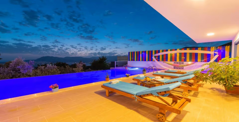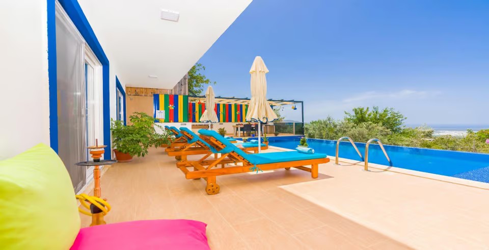 Villa Manolya 1, Kalkan Üzümlü tatil köyünde yer alan havuzu tam korunaklı, 2 yatak odalı villanın en alt katında ise çocuklarınız ve sizler için hobi odası yer almaktadır. Geniş bir plana sahip mimarisi ile villanın çok özel bir konumu bulunmaktadır. Oldukça geniş, müstakil yüzme havuzunun yan tarafında çocuk havuzu ve sığ havuz bulunmaktadır. Sığ havuza konulan şezlonglarla tatilinizde ayaklarınızı serin tutup güneşlenebilir ve muhteşem manzaranın tadını çıkarabilirsiniz. Villa Manolya'nın özel yüzme havuzu dışarıdan gözükmemektedir yani tam korunaklıdır. Bu özelliği ile doğa içerisinde muhteşem bir balayı tatili fırsatı sunmaktadır. Aynı zamanda muhafazakar aileler içinde çok uygun bir seçenektir.