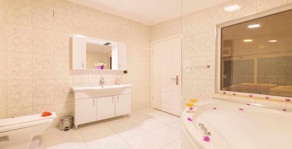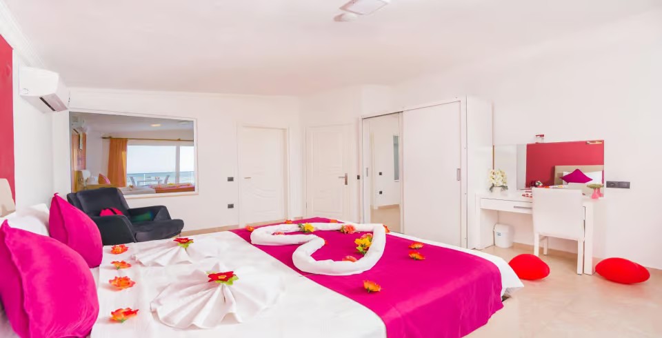 1. Yatak Odası : 1 adet çift kişilik yatak, klima, komodin, makyaj masası, elbise dolabı, jakuzi, banyo ve lavabo bulunmaktadır.