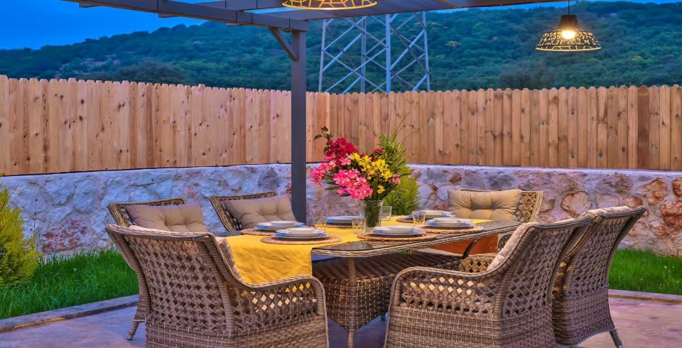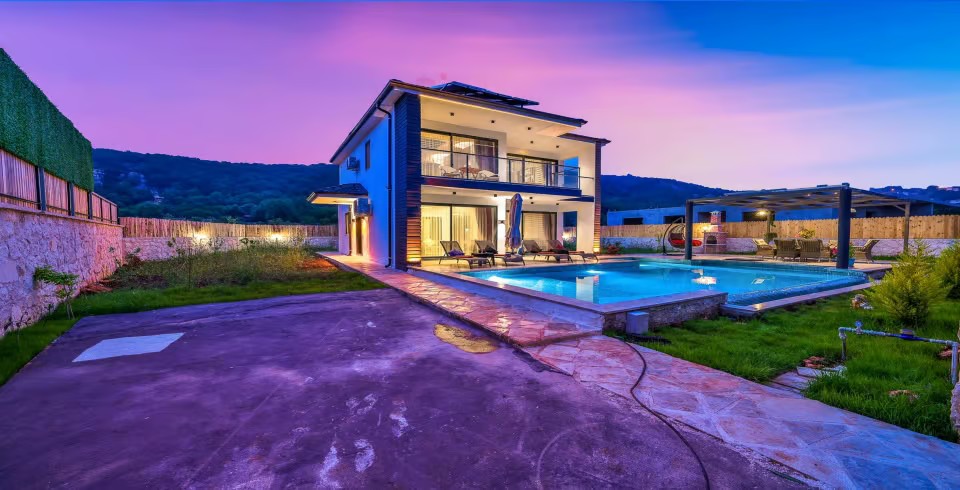 Havuz ve Bahçe: Özel yüzme havuzu, 4 adet şezlong,1 adet güneş şemsiyesi, 6 kişilik bahçe yemek masası, damla salıncak ve taş barbekü bulunmaktadır.