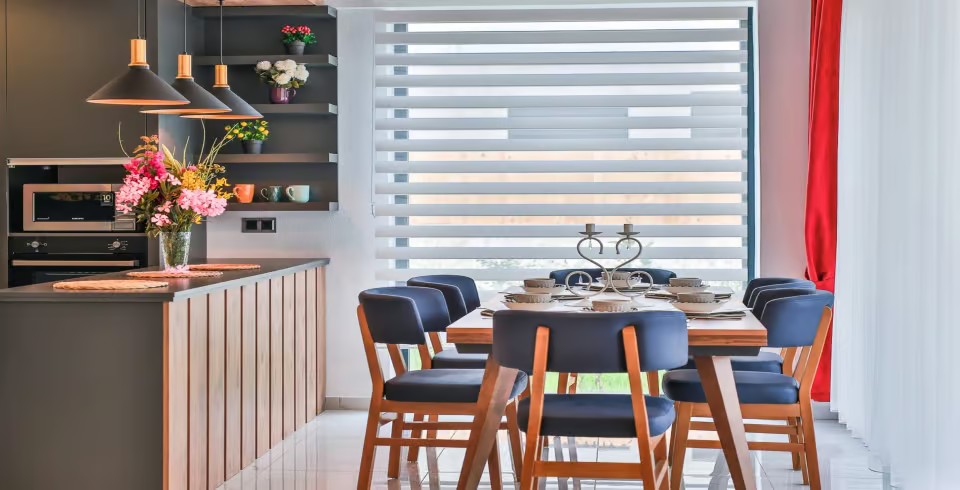 Salon : Modern salonunda konforlu oturma gurubu ,orta sehpa, TV ,klima, 6 kişilik yemek masası bulunmaktadır.