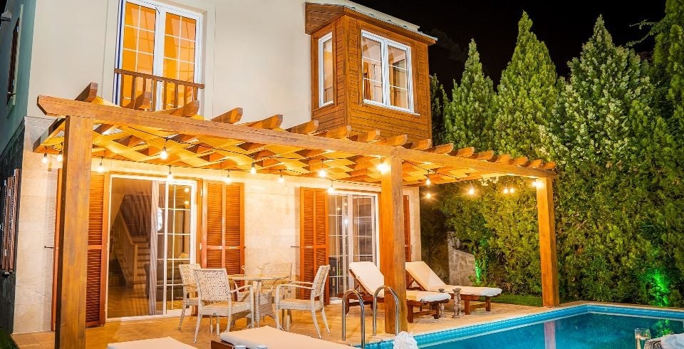 Kiralık yazlık villamız kalkan lavanta mevkiinde  konumlanmıştır. Muhteşem deniz ve ada manzarasına sahiptir. Villamız 3 yatak odalı 6 kişilik kapasiteye sahiptir. Balayı çiftleri ve  aileler için bu manzarada vakit geçirmenin tadını çıkarmak için en güzel seçeneklerimizden bir tanesidir özel yüzme havuzu ve lüks eşyalar  kullanılmıştır. Villamızın salon bölümünden  havuz terasına çıkış yapılmaktadır.
