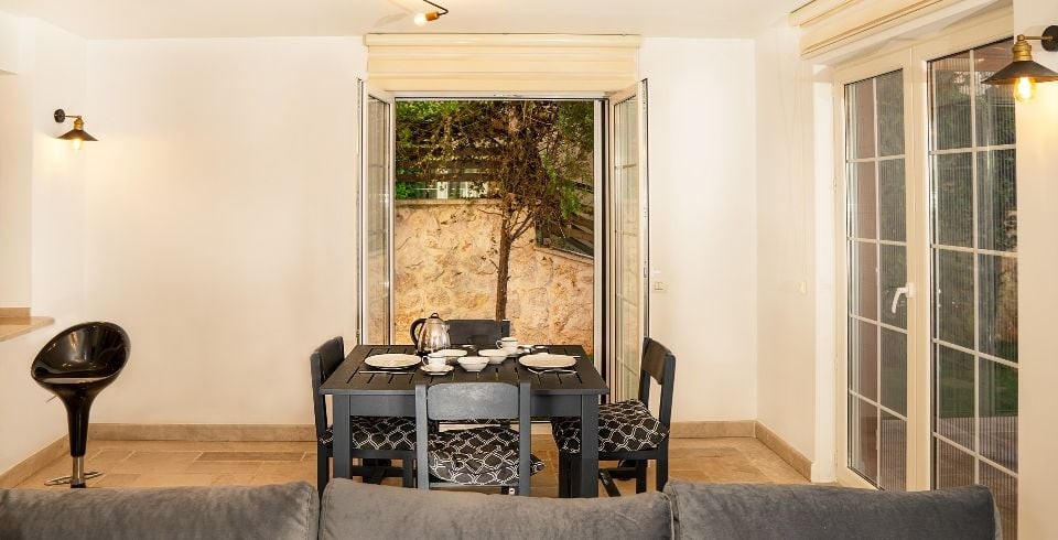 Salon : Salon içerisinde oturma grubu, TV, klima,  sehpa bulunmaktadır. Havuz terasına çıkış yapılabilmektedir.