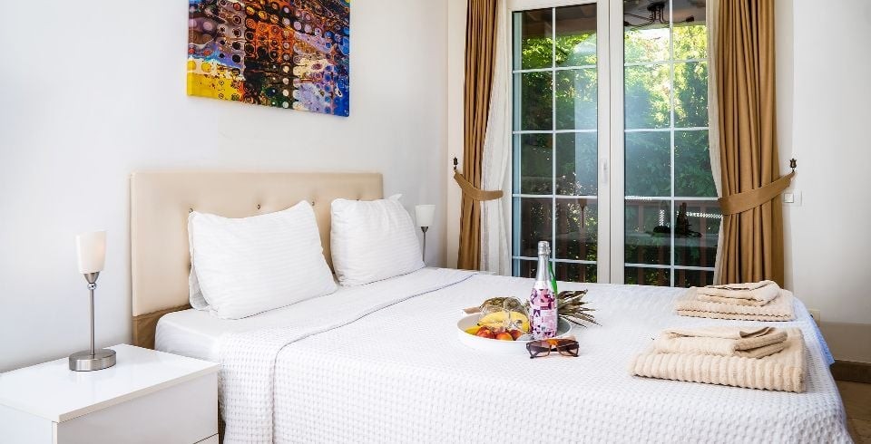 1. Yatak Odası : 1 adet çift kişilik yatak, klima, komodin, TV, elbise dolabı, makyaj masası, jakuzi, banyo ve tuvalet bulunmaktadır.