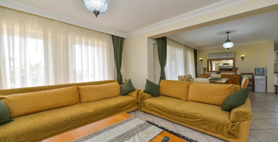 Salon : Konforlu oturma grubu, LCD TV, klima ve WC mevcuttur. Havuz terasına çıkış bulunmaktadır.