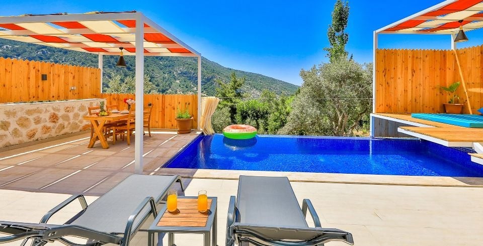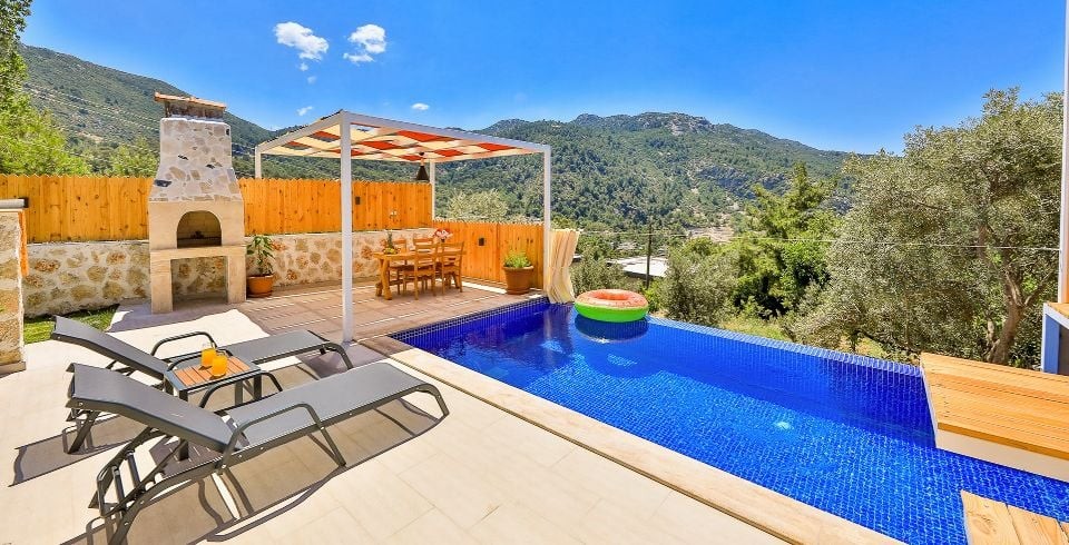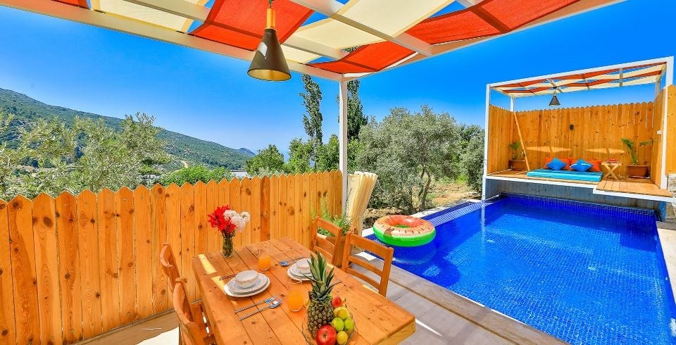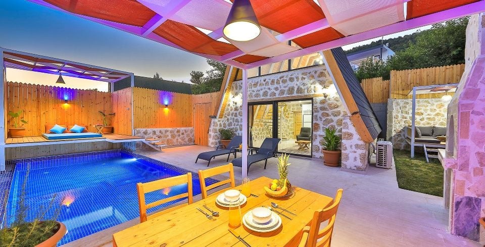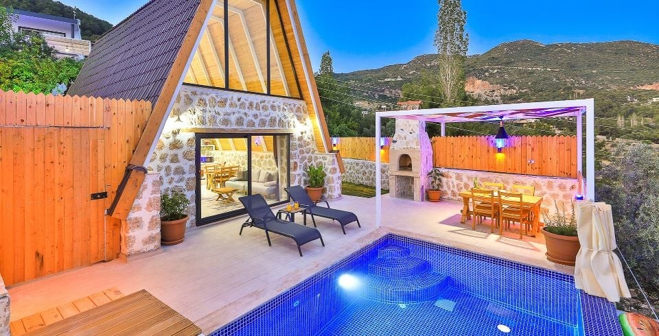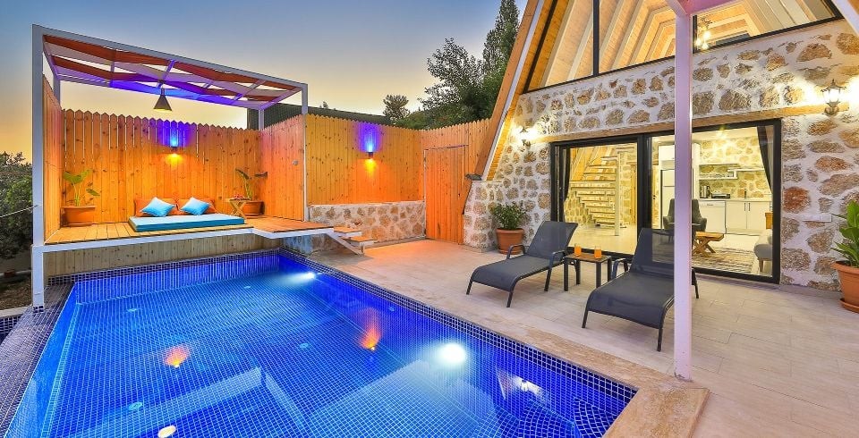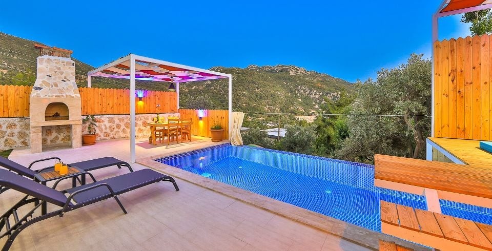 Villa Mavi Ay Kalkan İslamlar bölgesinde yer almaktadır. 1 yatak odasına sahip tatil villamız 2 kişilik konaklama kapasitesine sahiptir. Doğa içinde bir konuma sahip olan tatil villamızın sauna bulunmaktadır. Havuz alanı sizlere keyifli bir tatil ortamı sunmaktadır. Balayı çiftleri için ideal bir seçenek olan muhafazakar hassasiyete sahip misafirlerimiz içinde uygun bir tatil ortamı sunmaktadır.