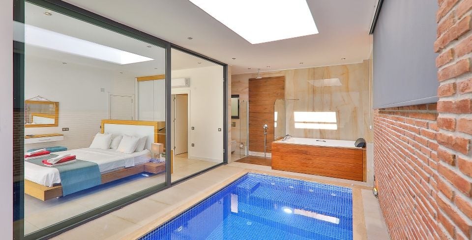 Önemli Bilgi: Isıtma Havuzlu villalarımızda iç havuz ve kapalı havuz sıcaklıklarımız insan sağlığı ve hijyen koşulları sebebi ile tüm villalarımızda 27 derece civarında bulunmakta olup extra durumları lütfen yetkililer ile paylaşınız.